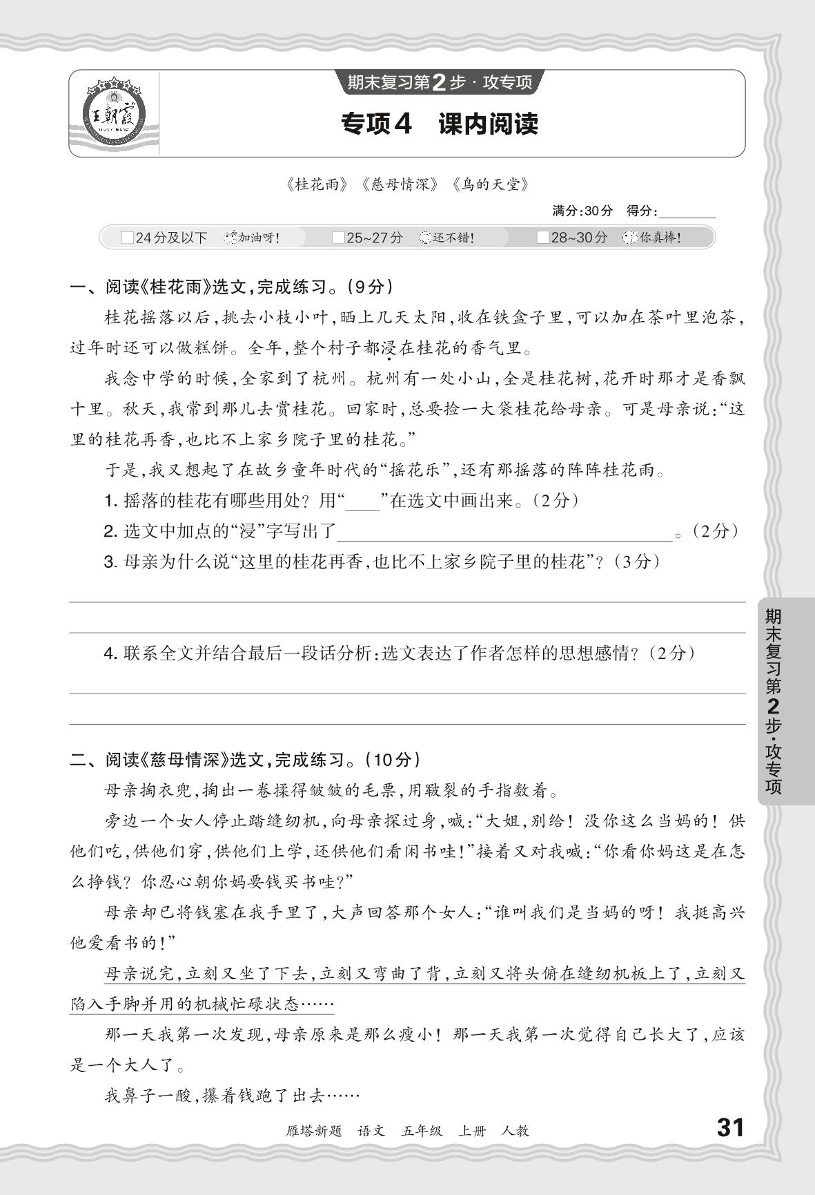 2023秋上册五年级语文人教版 期末专项·课内阅读_R231128163231169【4】