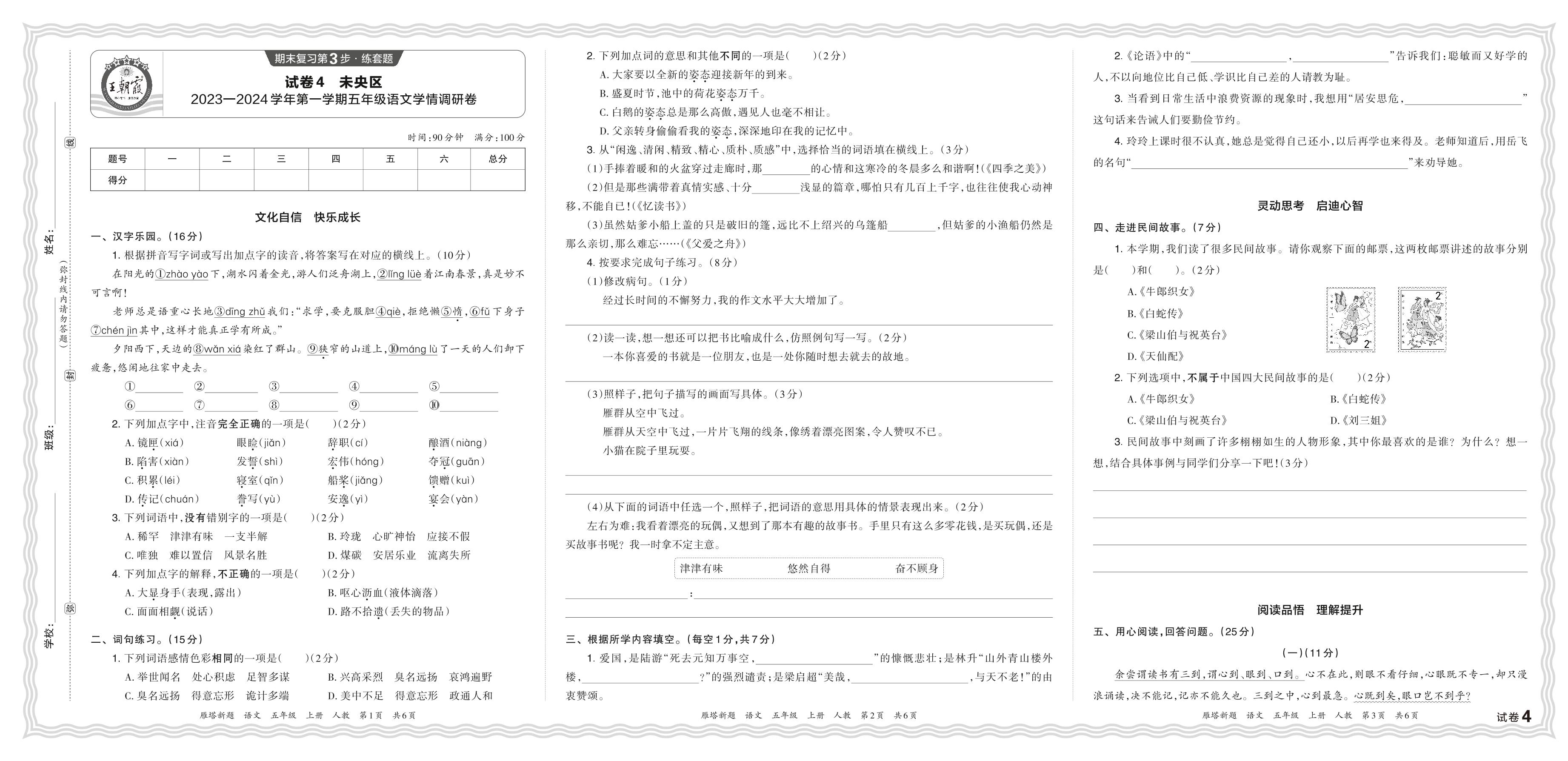 陕西省西安市未央区2023—2024学年第一学期五年级语文学情调研卷(人教版)【4】