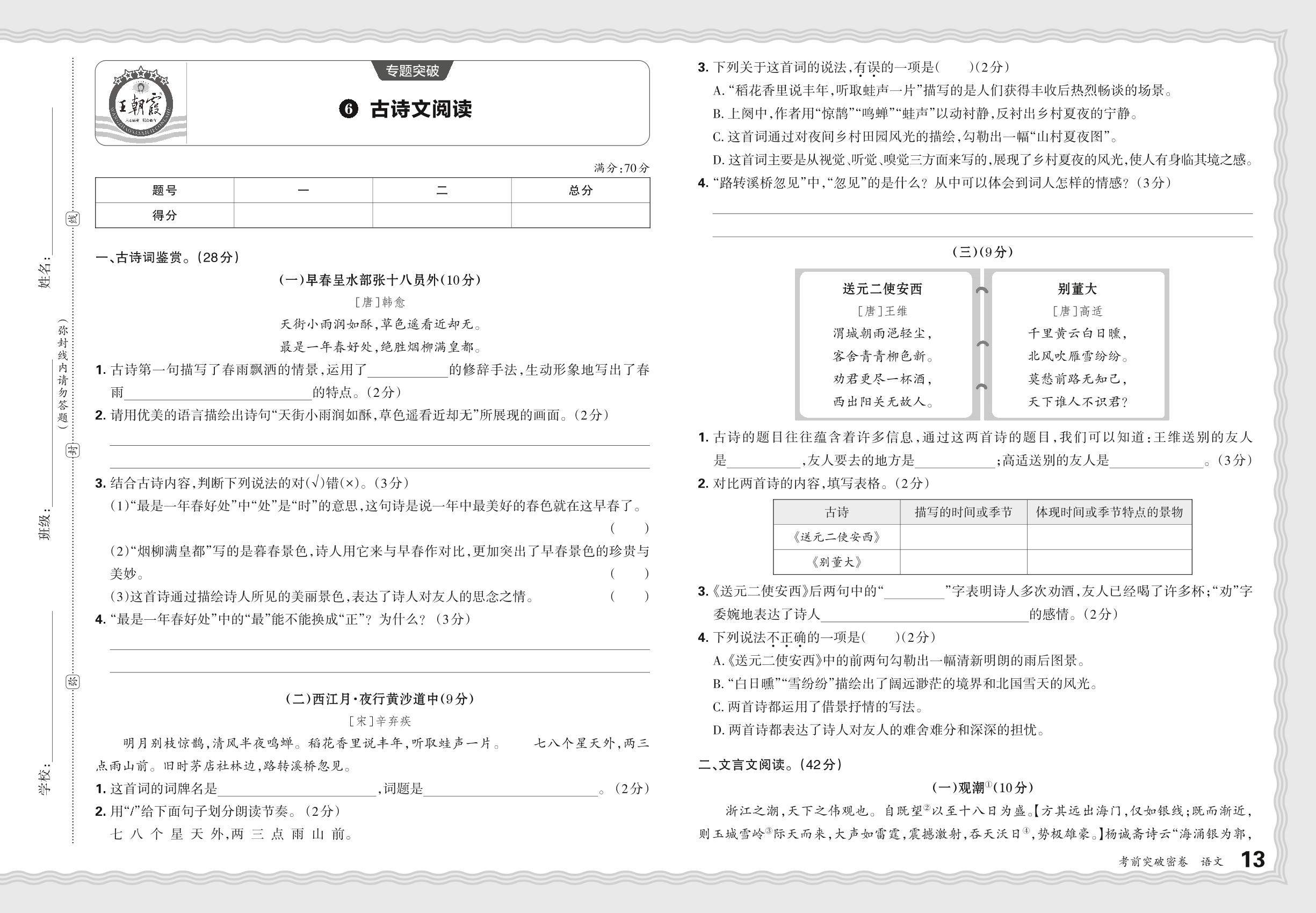 小升初语文·2024王朝霞专题突破——古诗文阅读【7】