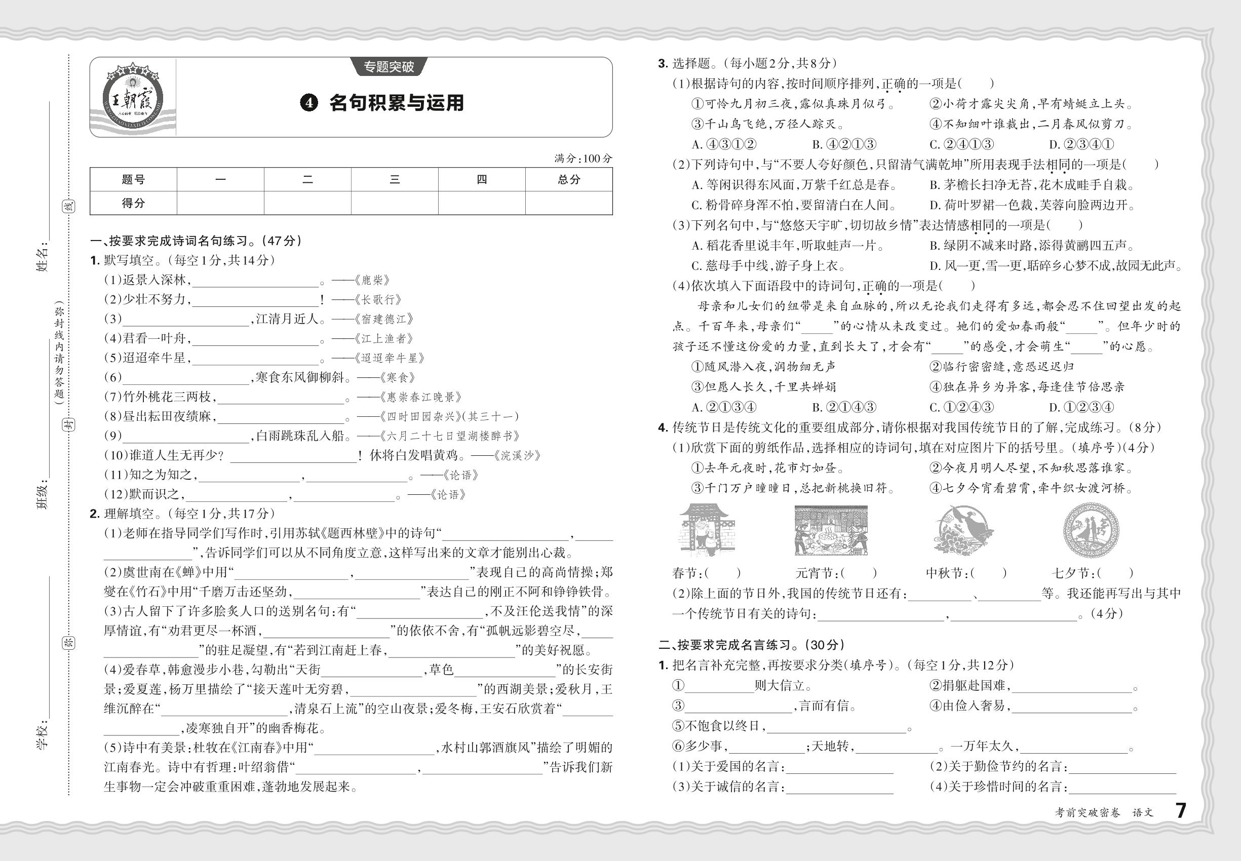 小升初语文·2024王朝霞专题突破——名句积累与运用【4】