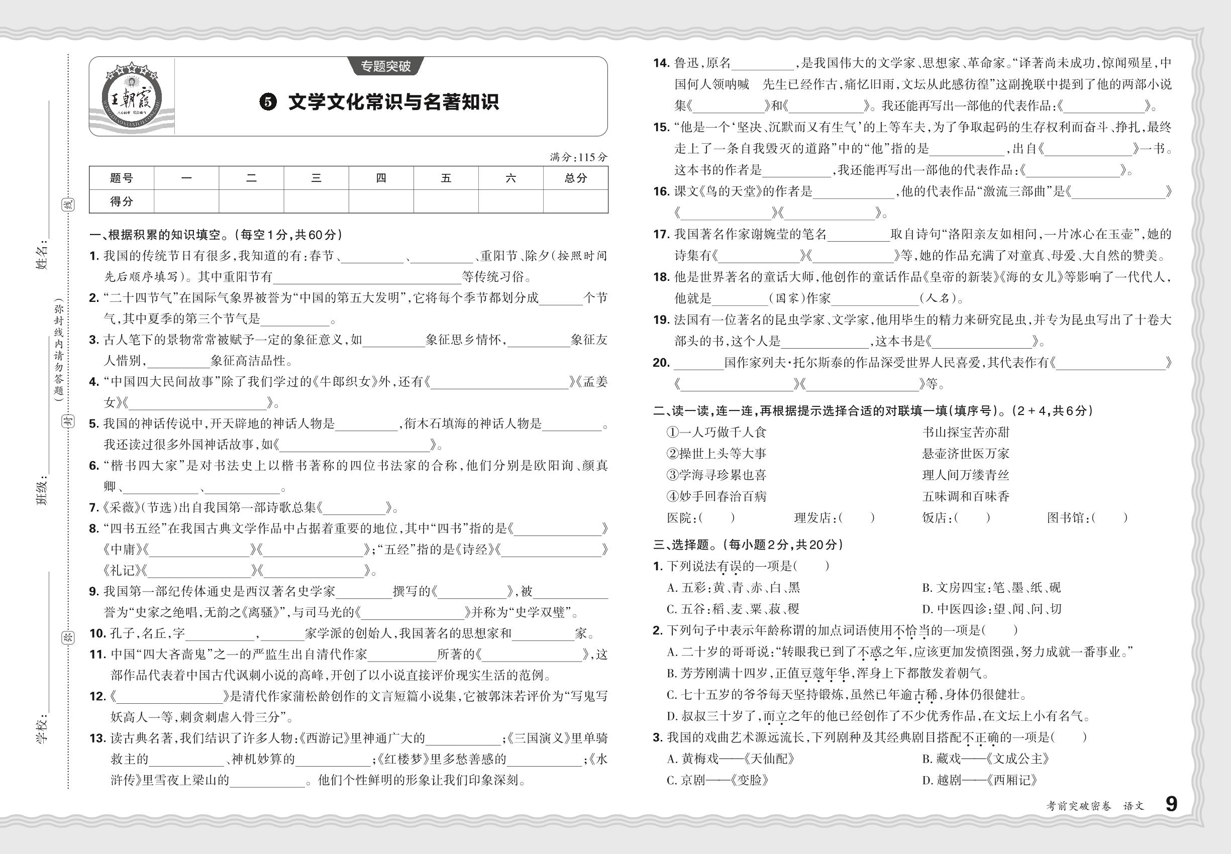 小升初语文·2024王朝霞专题突破——文学文化常识与名著知识【5】