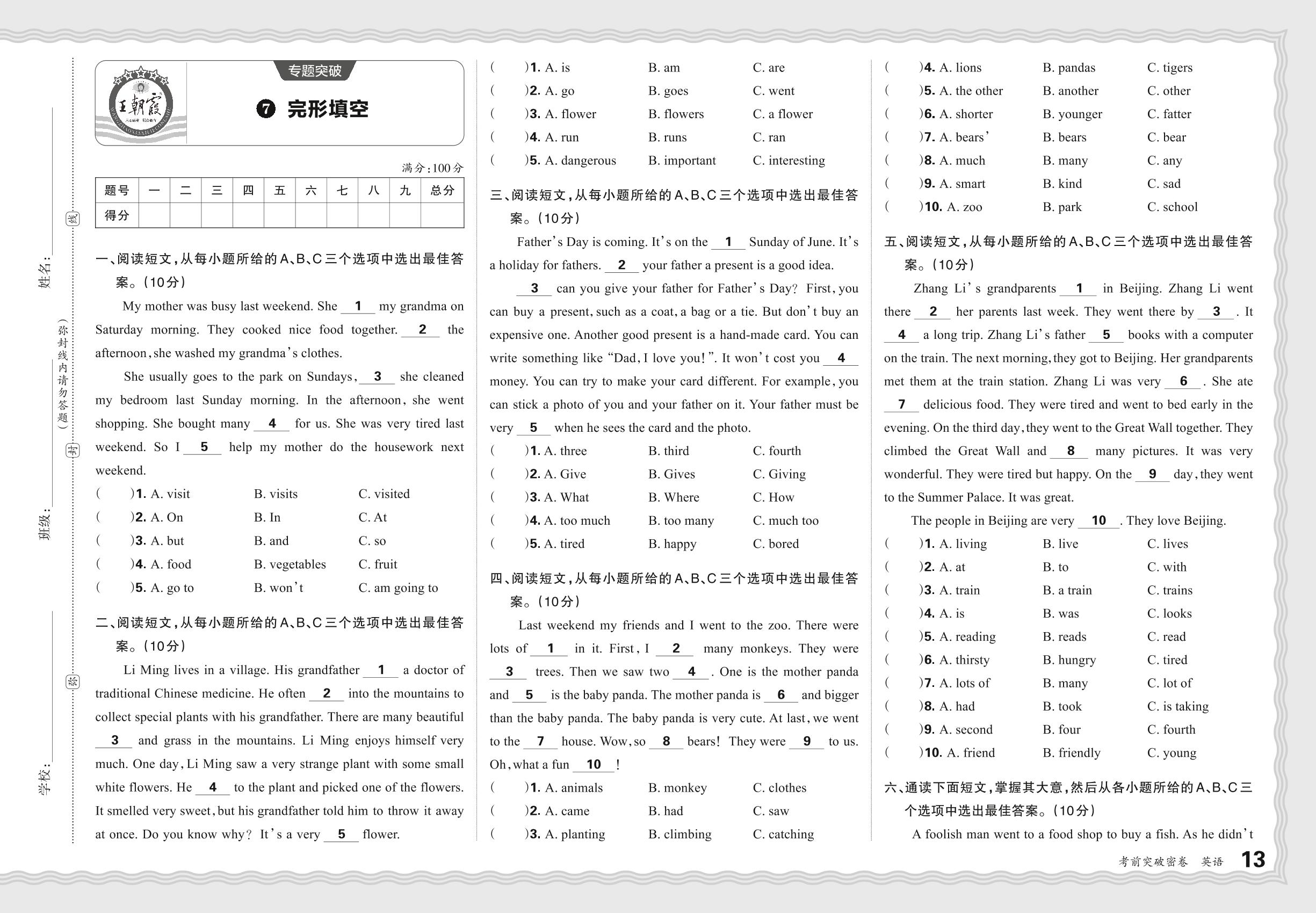 小升初英语·2024王朝霞专题突破——完形填空【7】