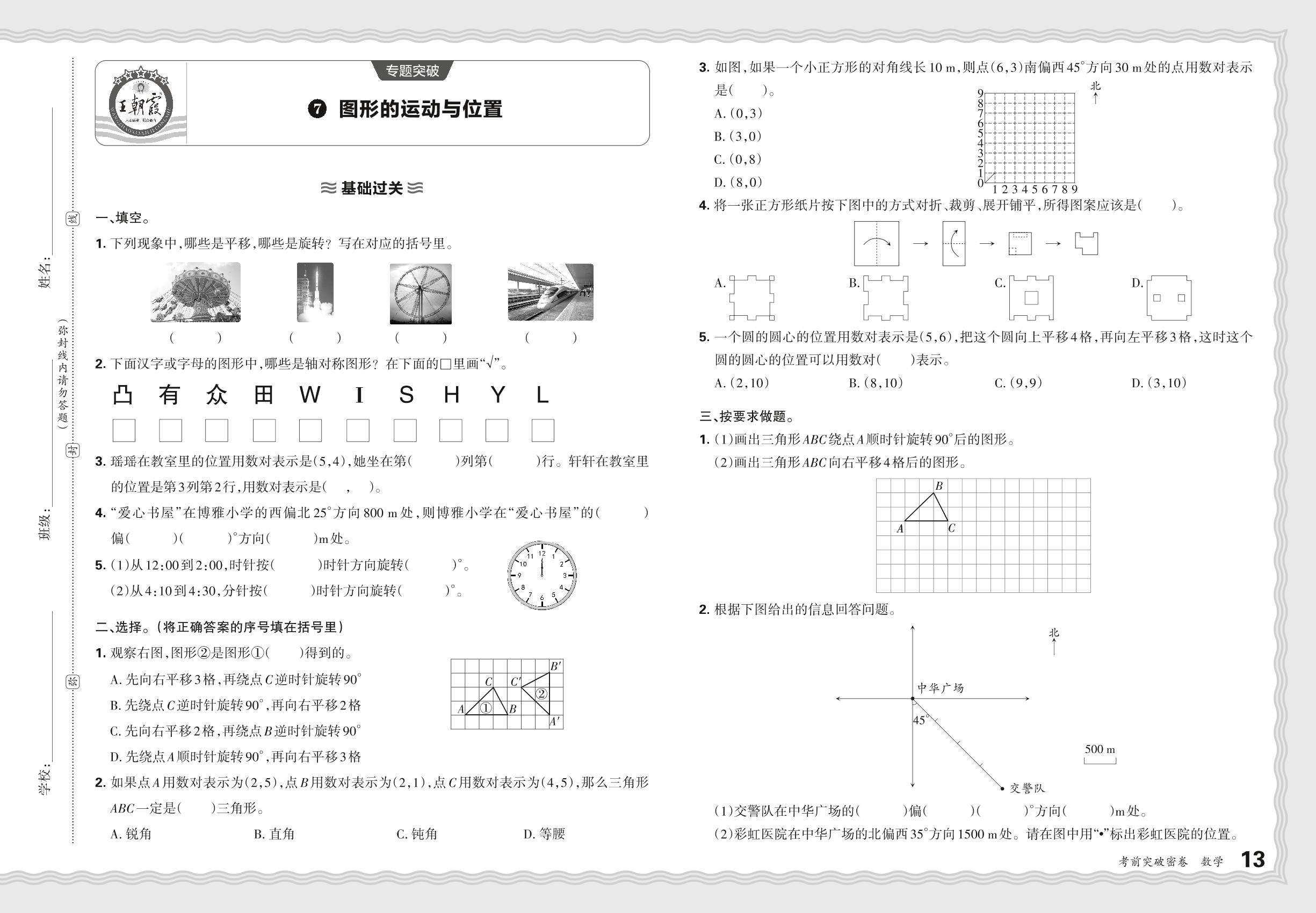小升初数学·2024王朝霞专题突破——图形的运动与位置【7】