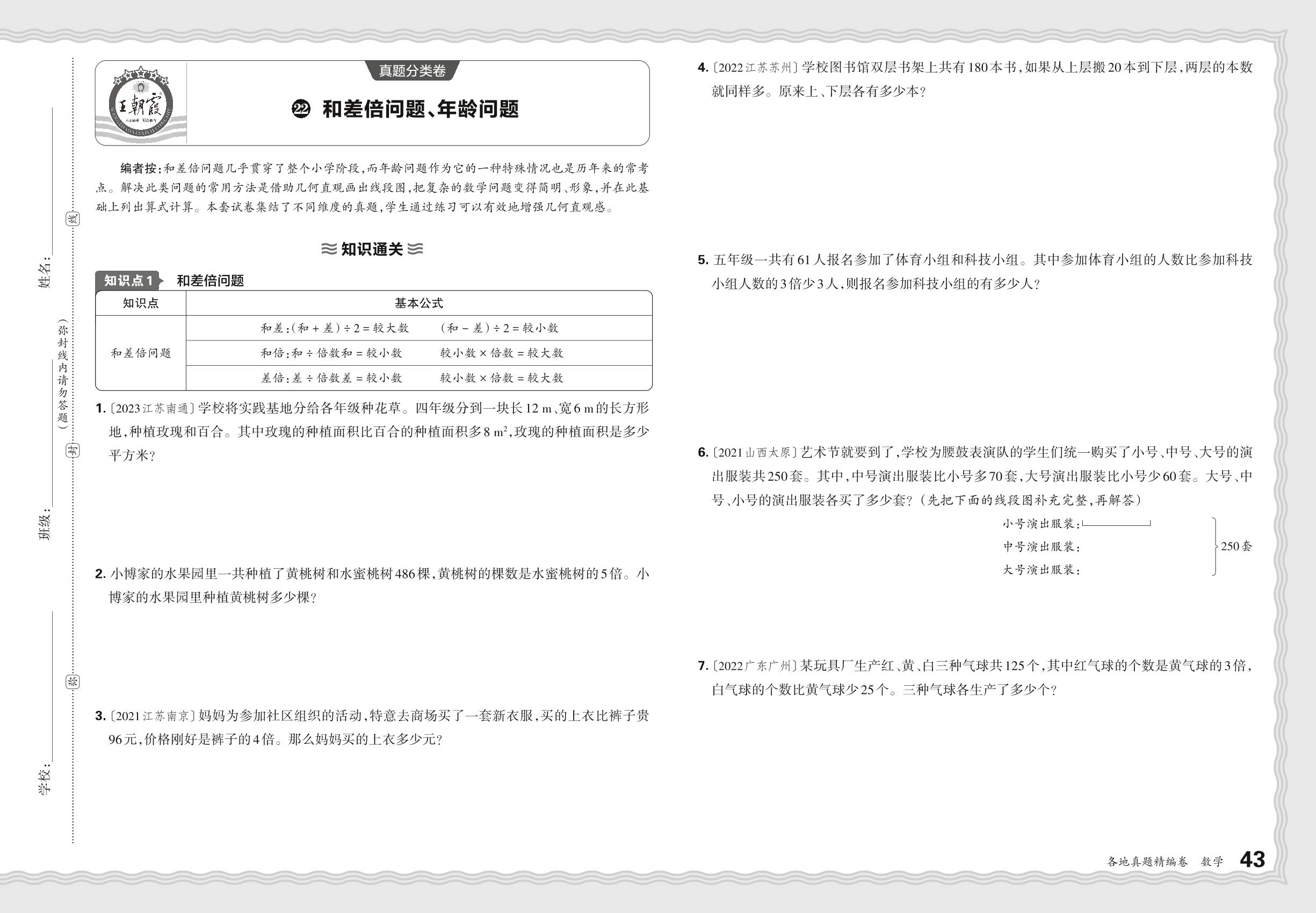 小升初数学·2024年真题分类卷——和差倍问题、年龄问题【22】