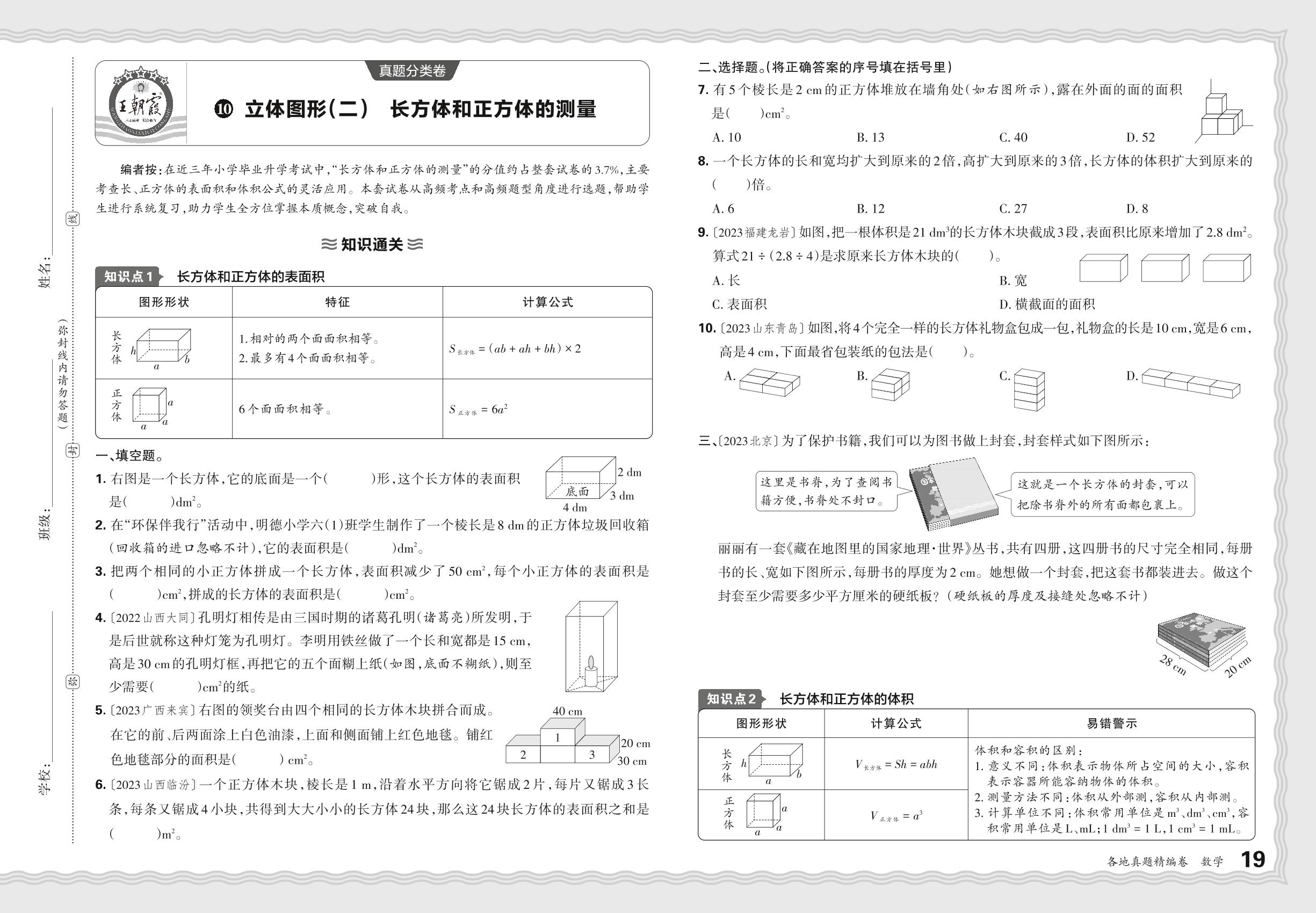 小升初数学·2024年真题分类卷——立体图形(二) 长方体和正方体的测量【10】