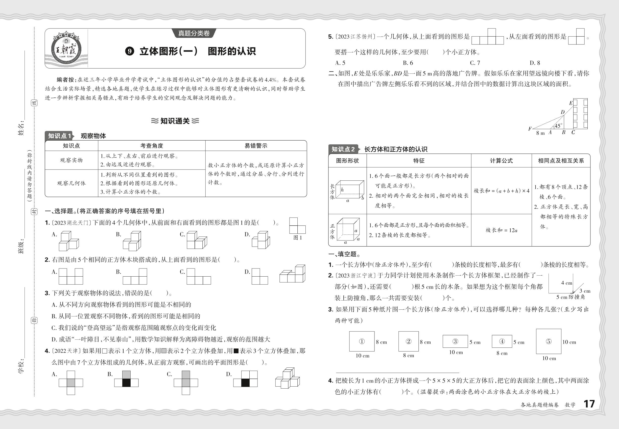 小升初数学·2024年真题分类卷——立体图形(一) 图形的认识【9】