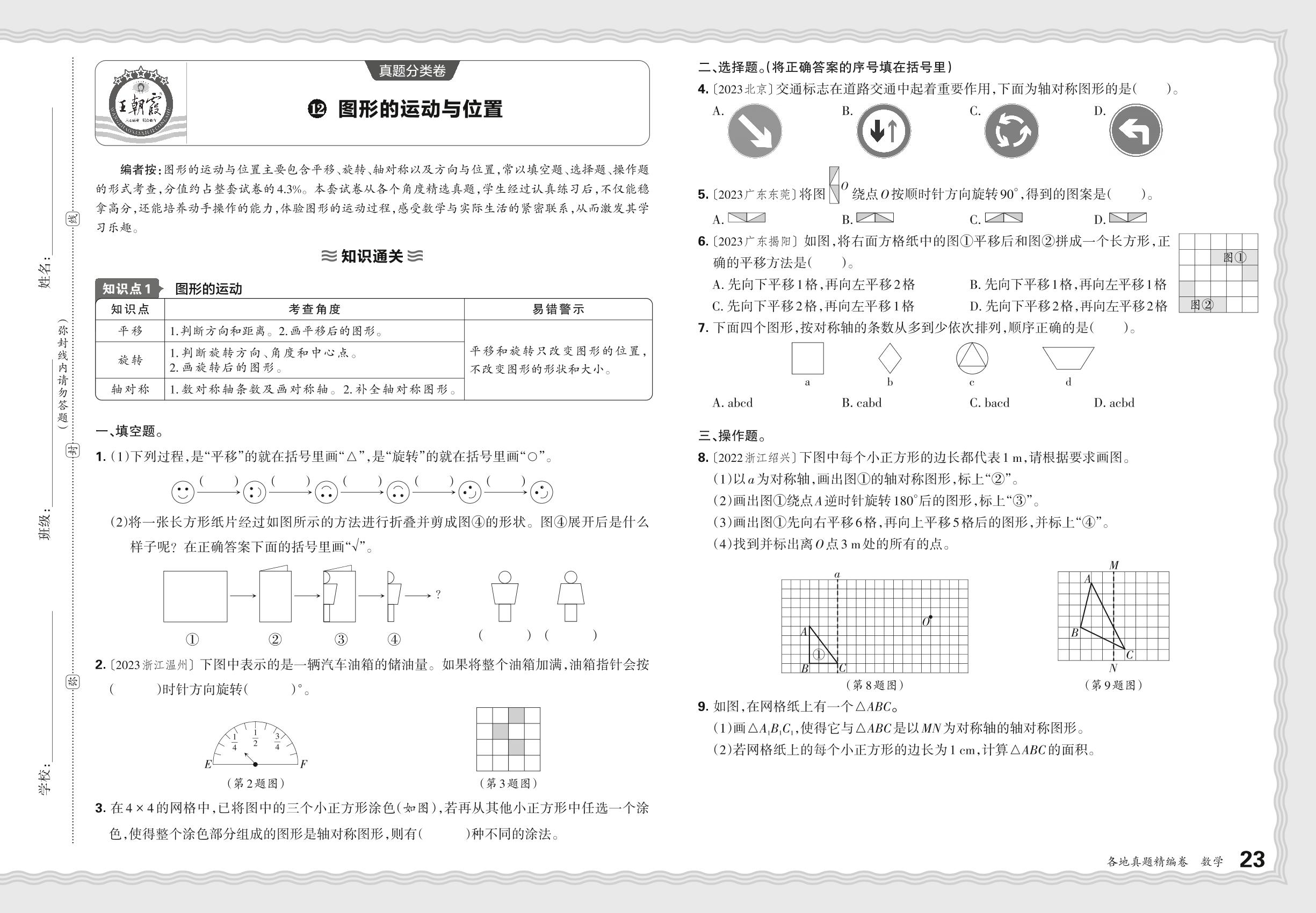 小升初数学·2024年真题分类卷——图形的运动与位置【12】