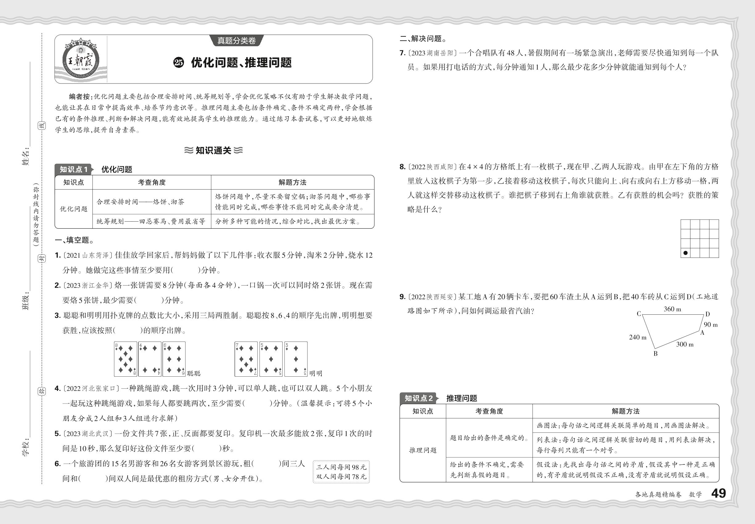 小升初数学·2024年真题分类卷——优化问题、推理问题【25】