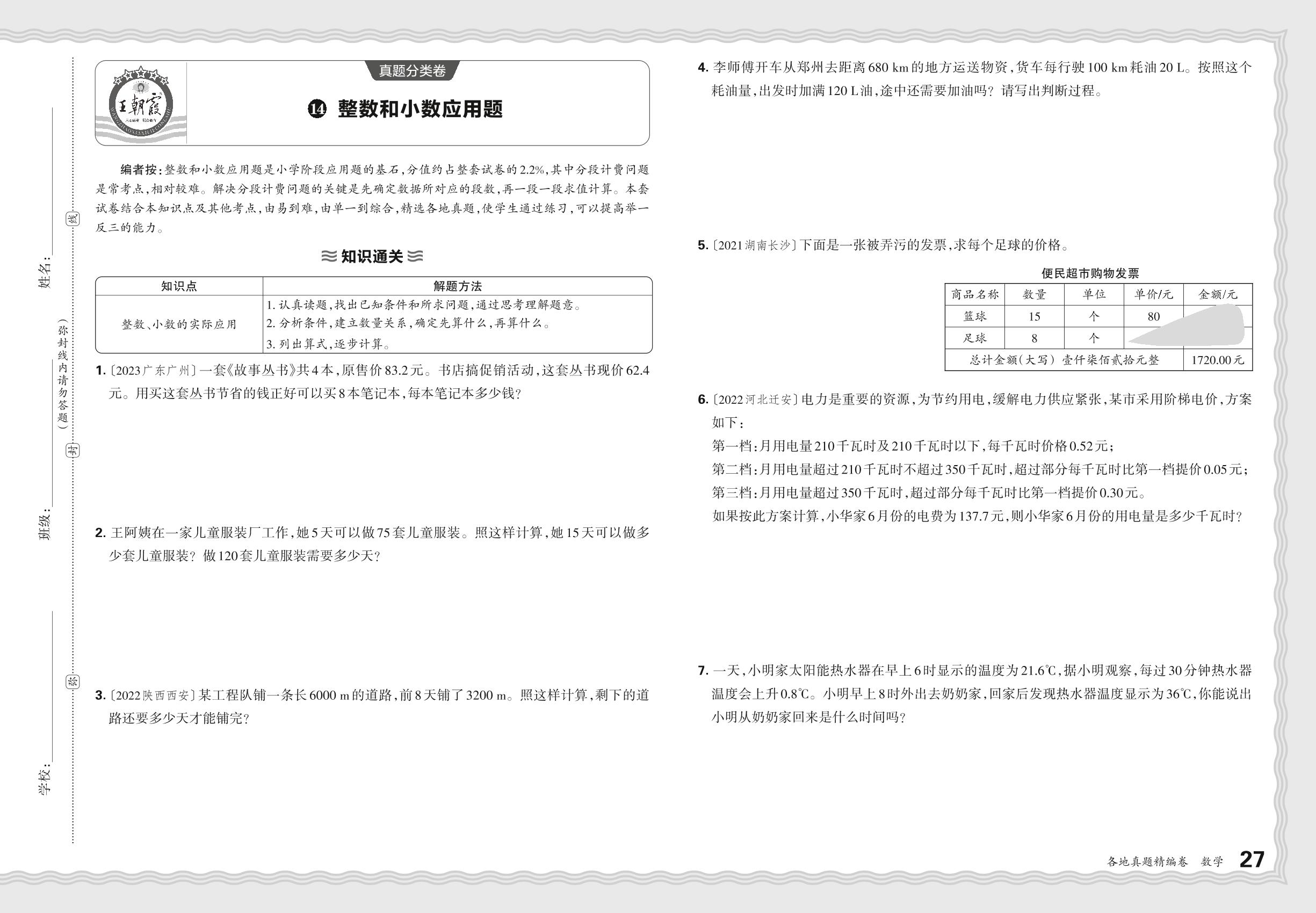 小升初数学·2024年真题分类卷——整数和小数应用题【14】