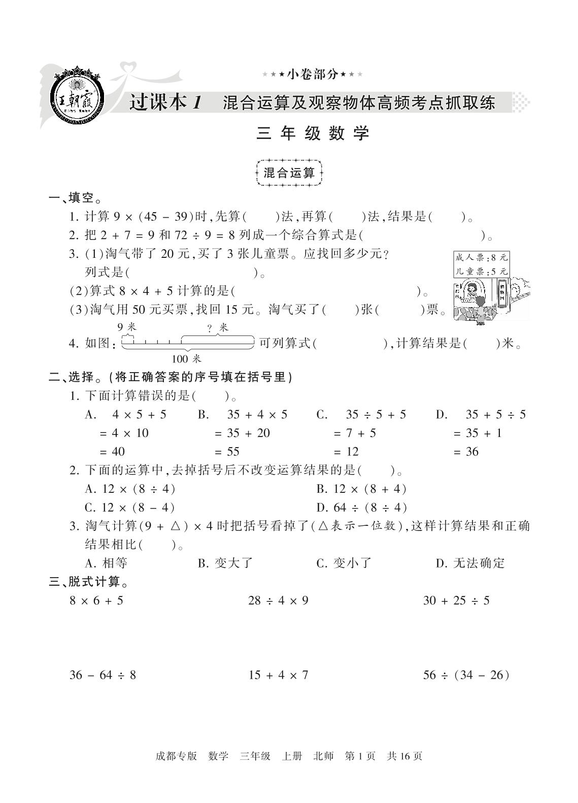 王朝霞期末小卷三年级上册数学(北师版)_R21080491537【0】