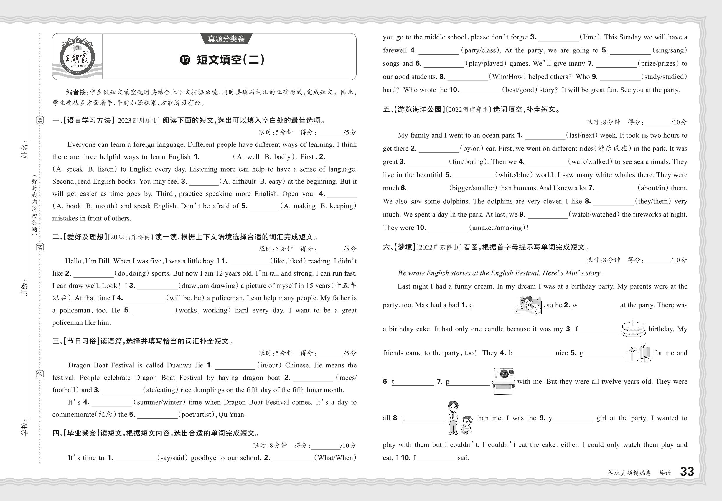 小升初英语·2024年真题分类卷——短文填空(二)【17】