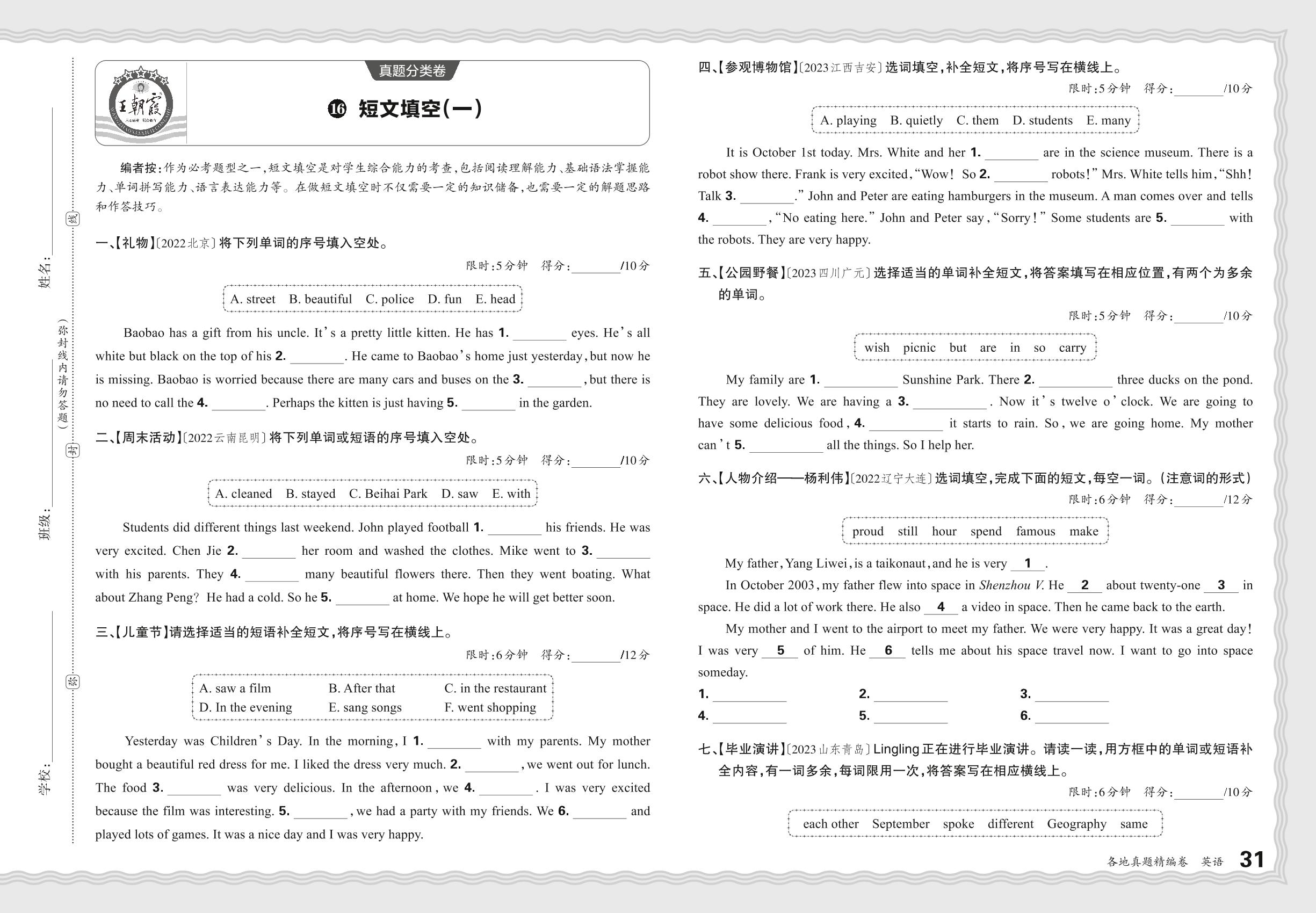 小升初英语·2024年真题分类卷——短文填空(一)【16】