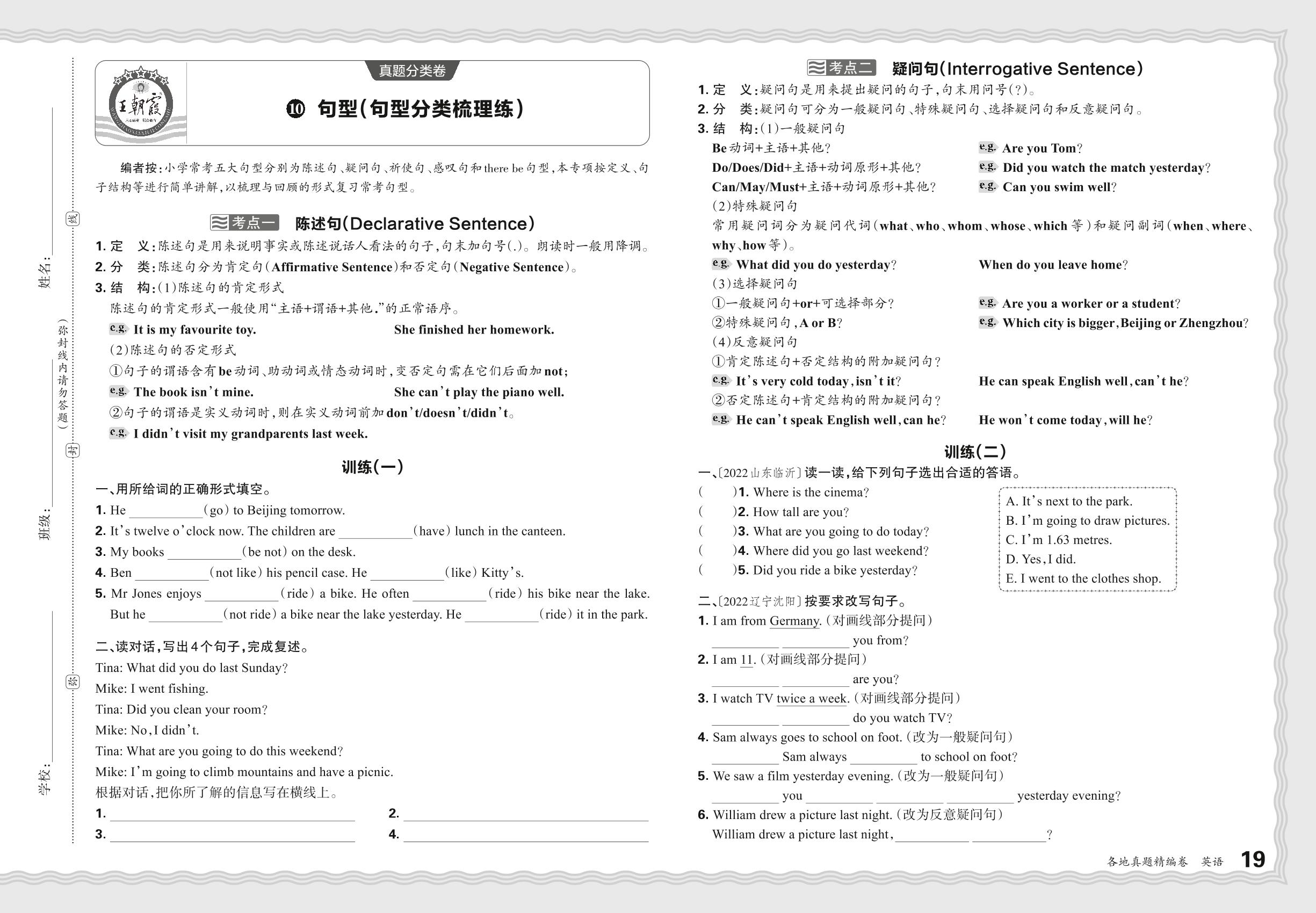 小升初英语·2024年真题分类卷——句型(句型分类梳理练)【10】