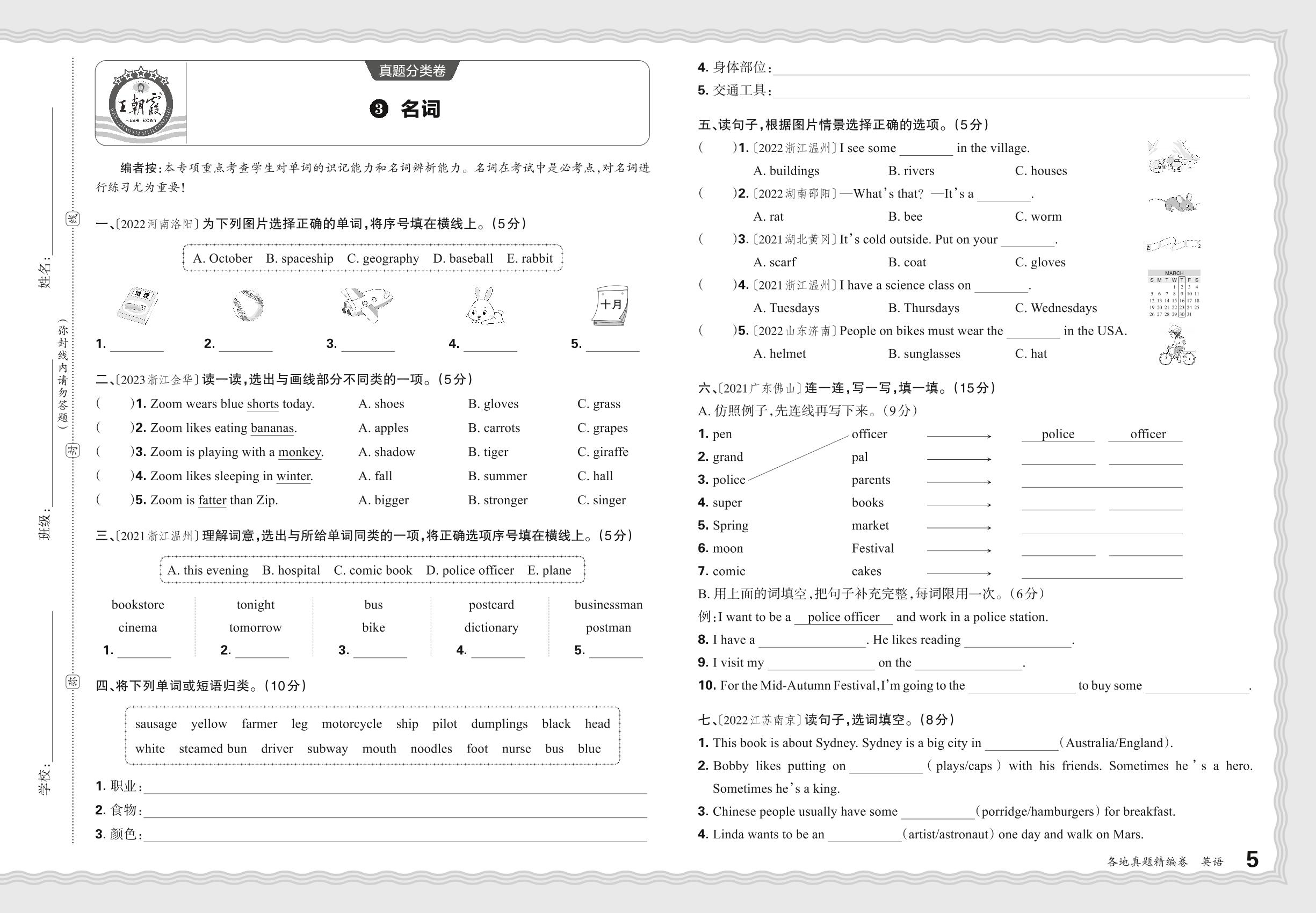 小升初英语·2024年真题分类卷——名词【3】