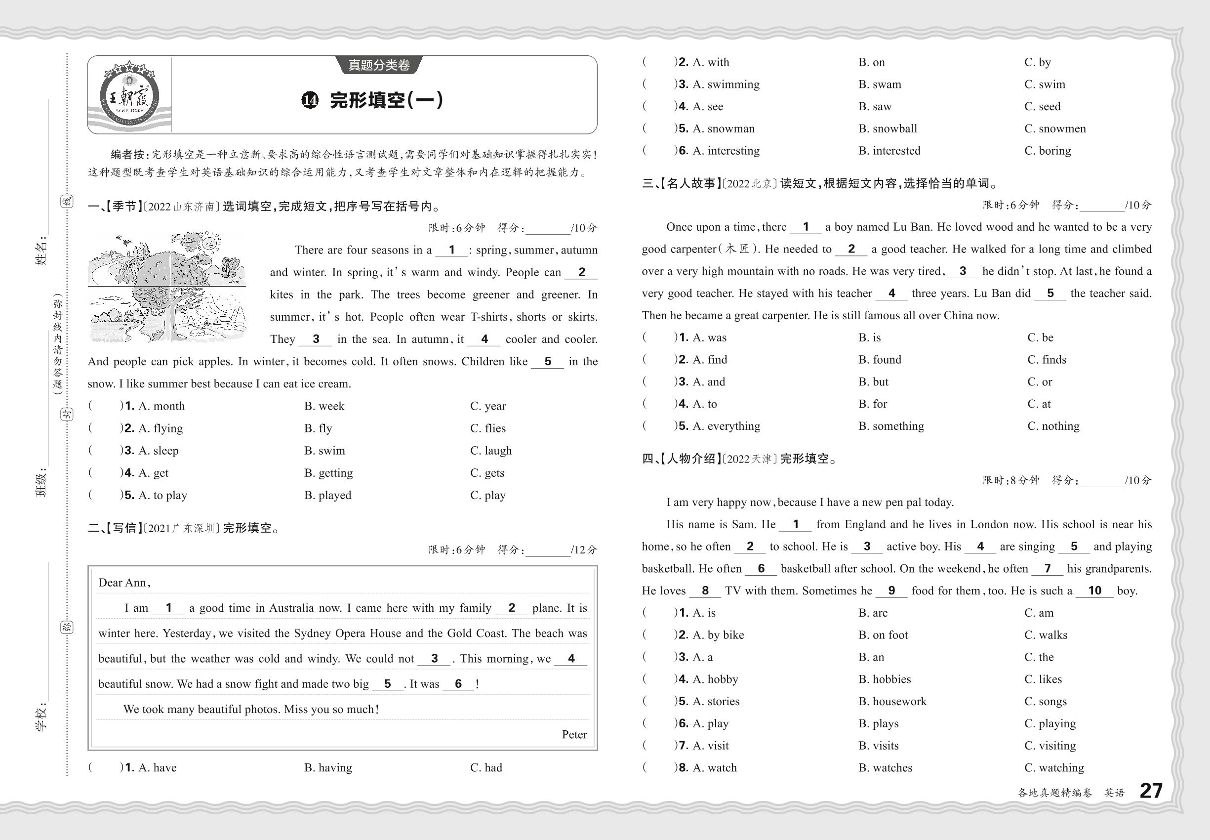 小升初英语·2024年真题分类卷——完形填空(一)【14】
