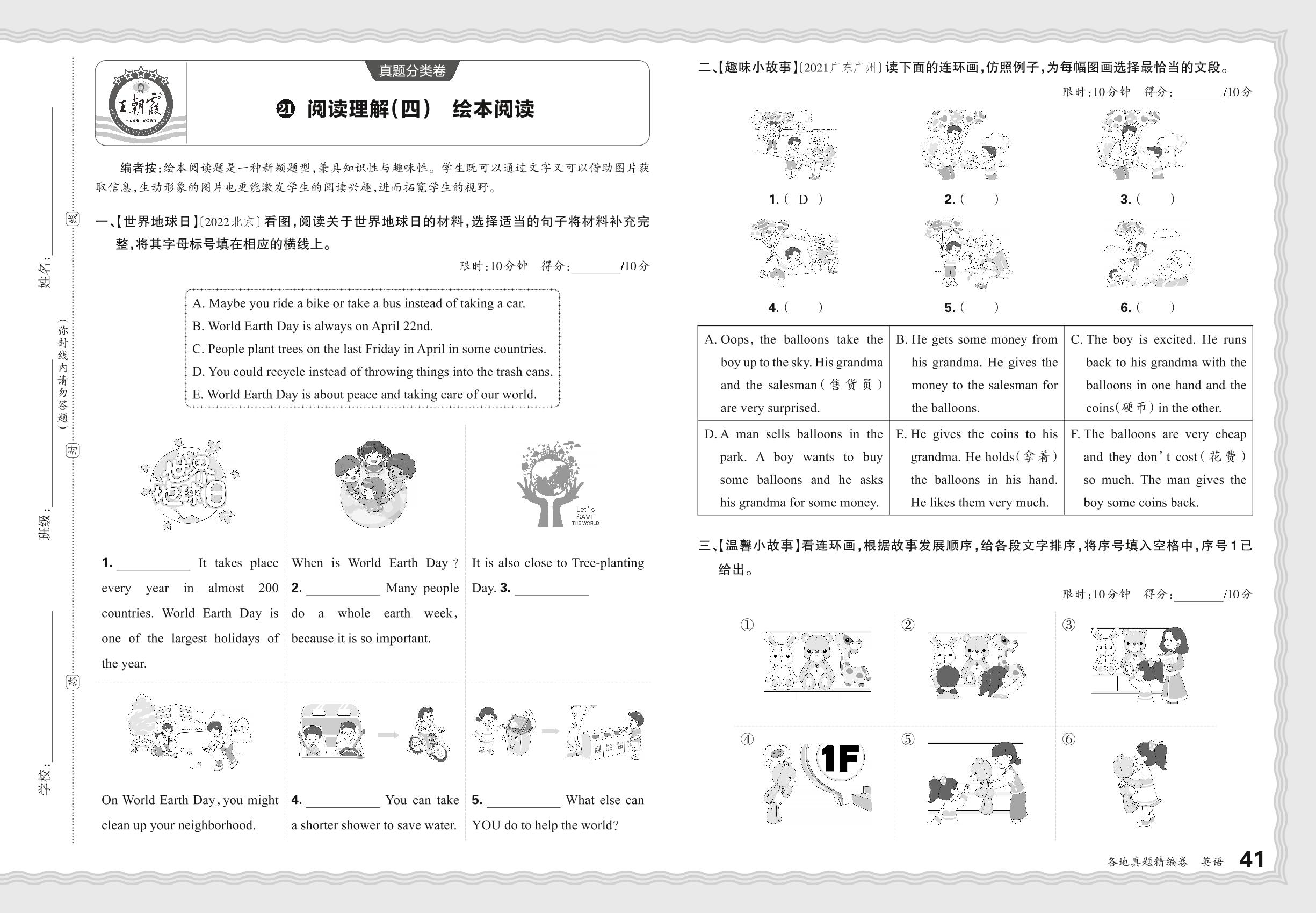 小升初英语·2024年真题分类卷——阅读理解(四) 绘本阅读【21】