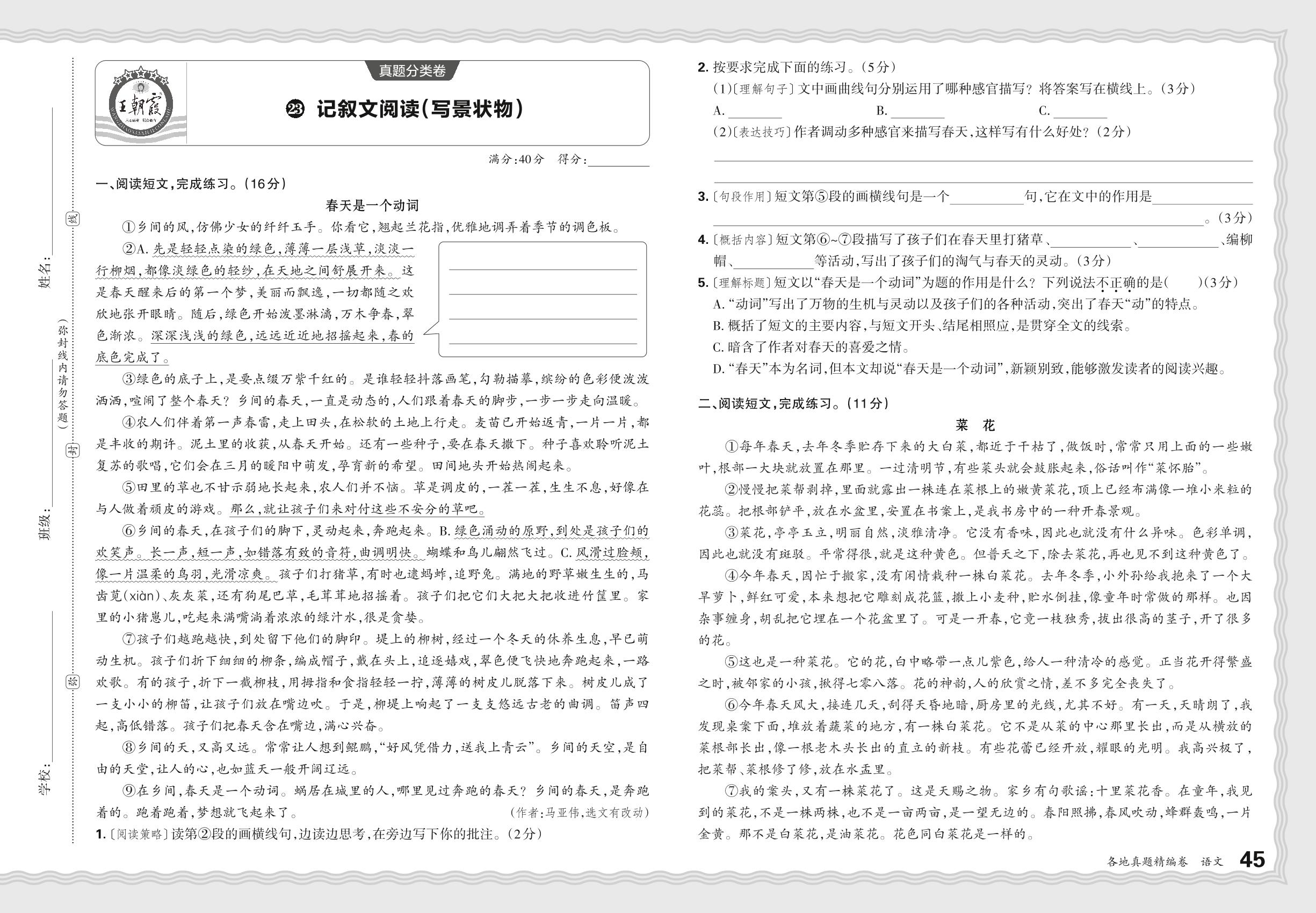 小升初语文·2024年真题分类卷——记叙文阅读(写景状物)【23】