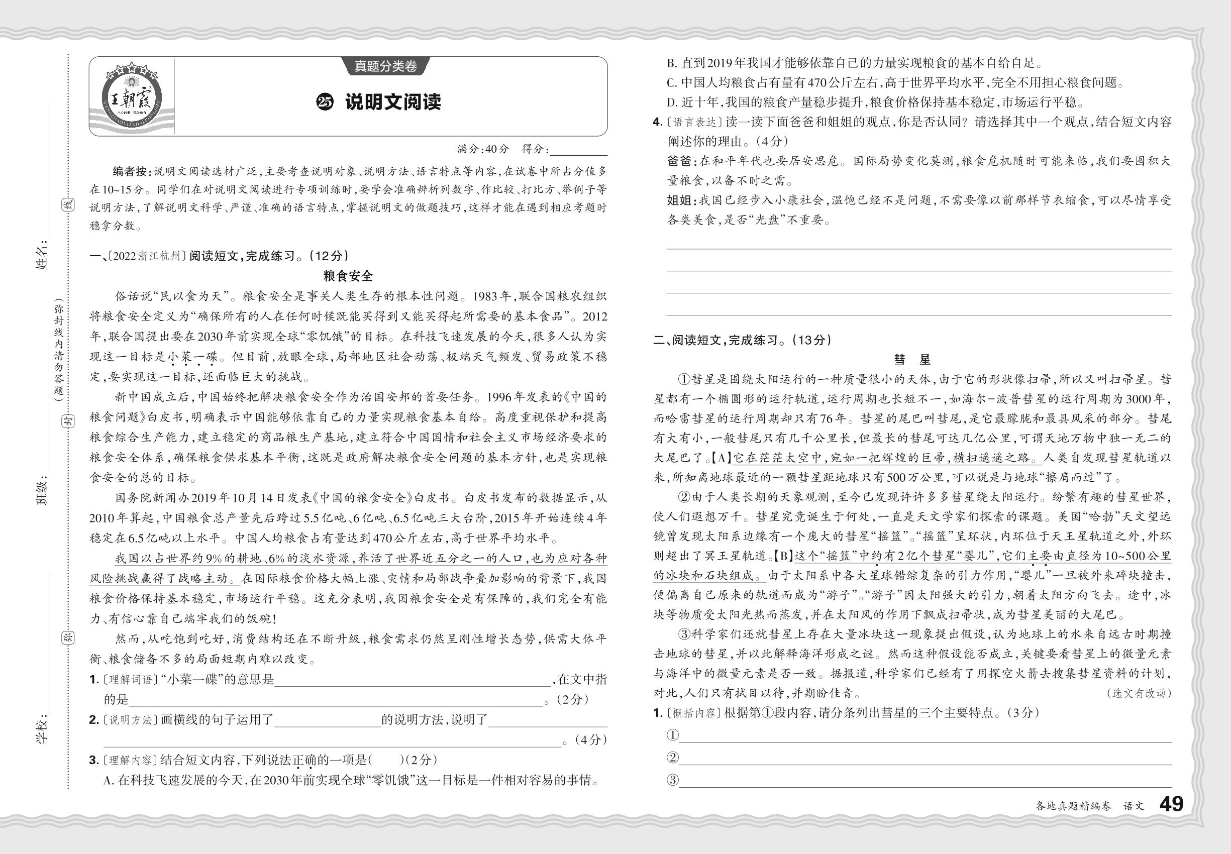小升初语文·2024年真题分类卷——说明文阅读【25】