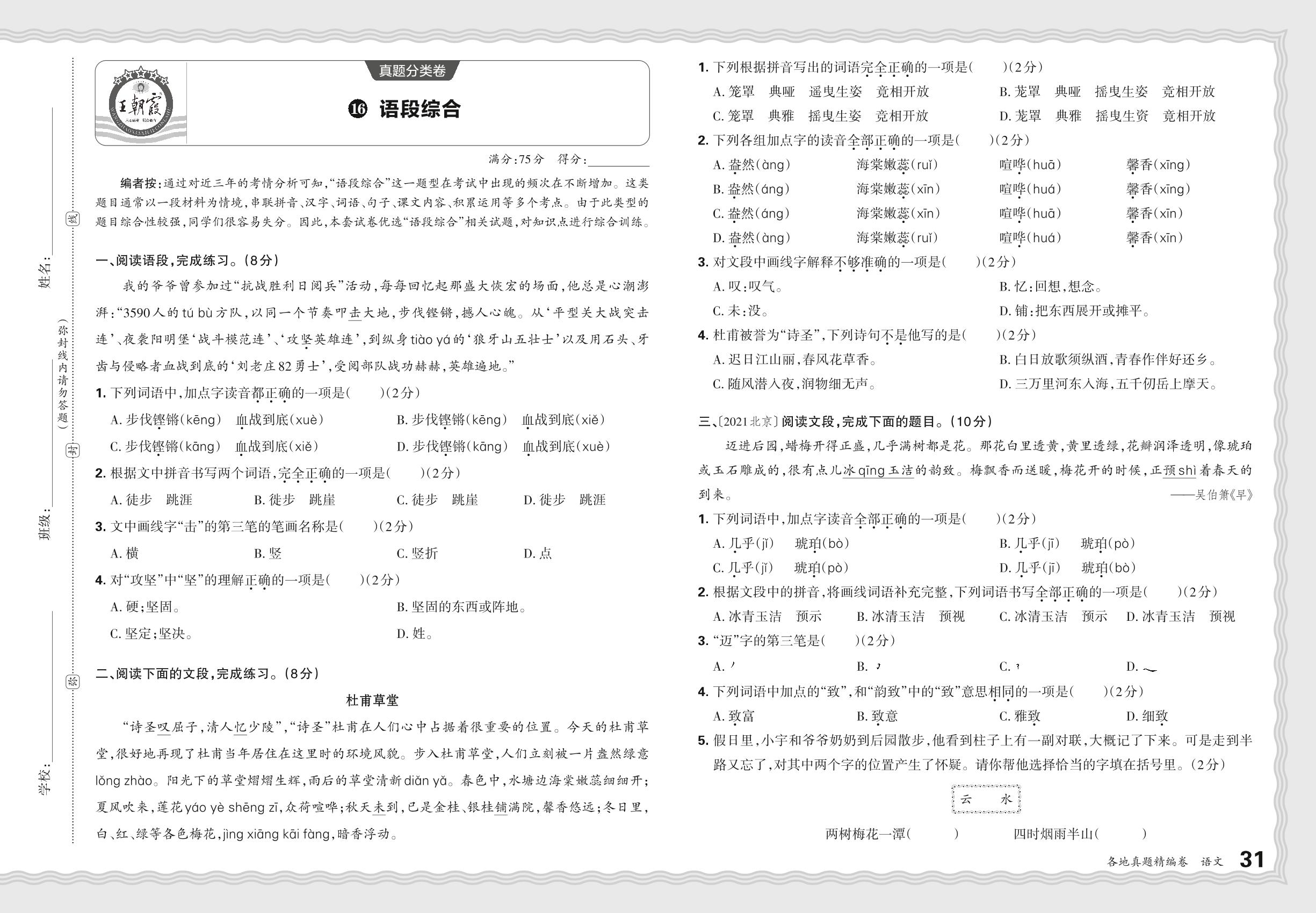 小升初语文·2024年真题分类卷——语段综合【16】