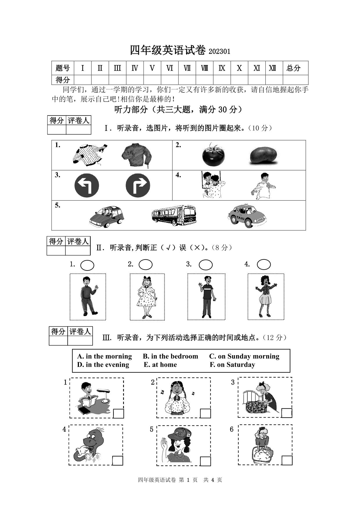 陕西省宝鸡市渭滨区2022-2023学年第一学期期末考试试卷四年级英语(冀教版)【无听力音频】