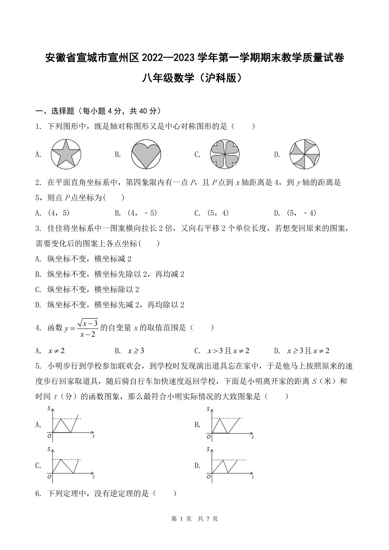安徽省宣城市宣州区2022—2023学年第一学期期末教学质量八年级数学(沪科版)