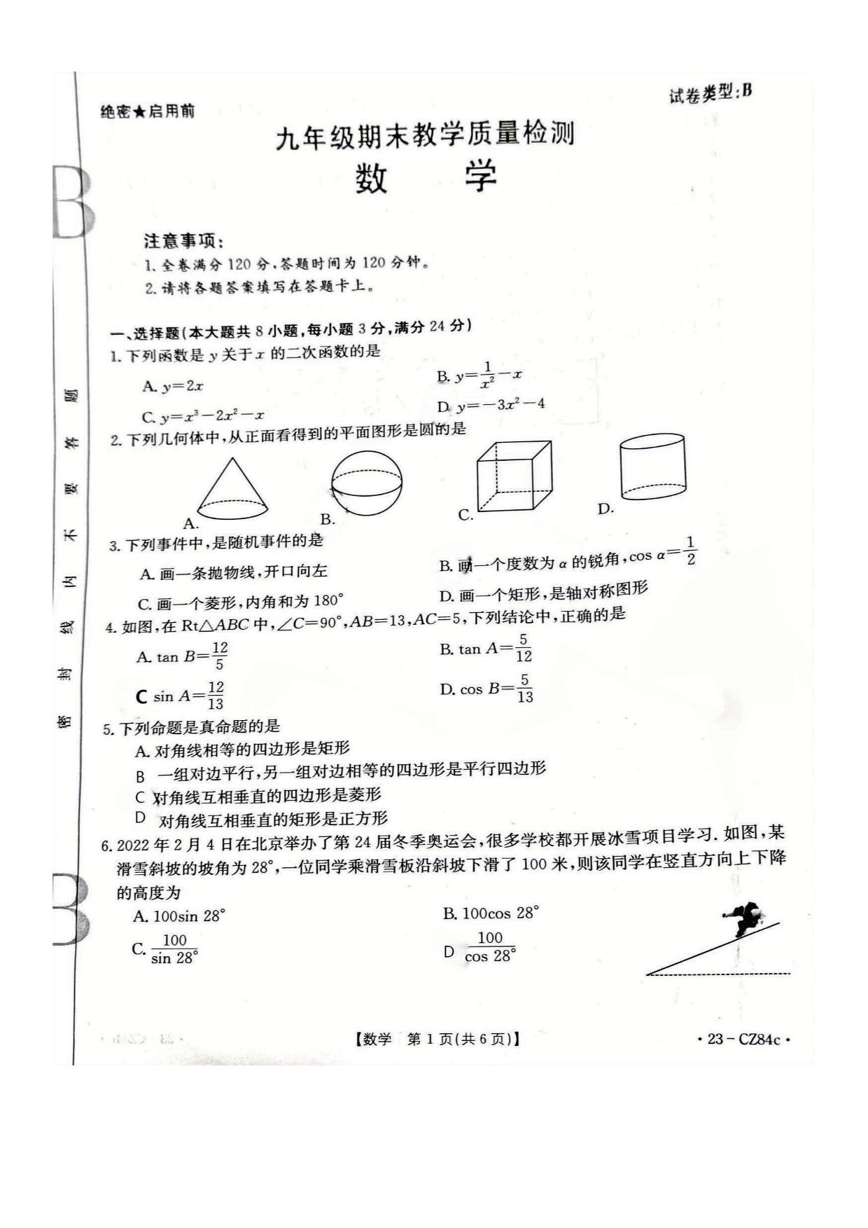 陕西省西安市未央区2022—2023学年上学期期末质量检测试卷九年级数学(北师版)