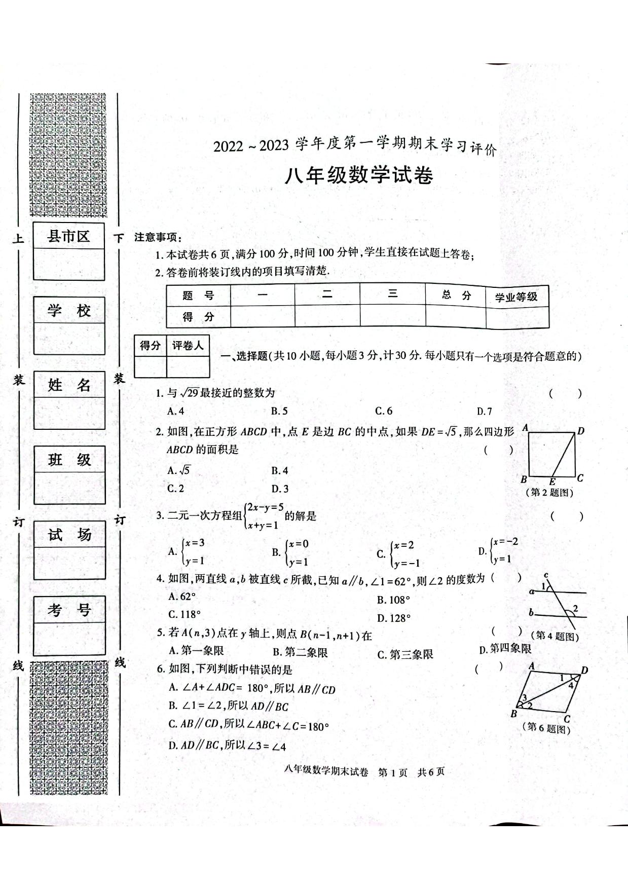 陕西省西安市长安区2022—2023学年上学期期末试卷八年级数学(北师版)