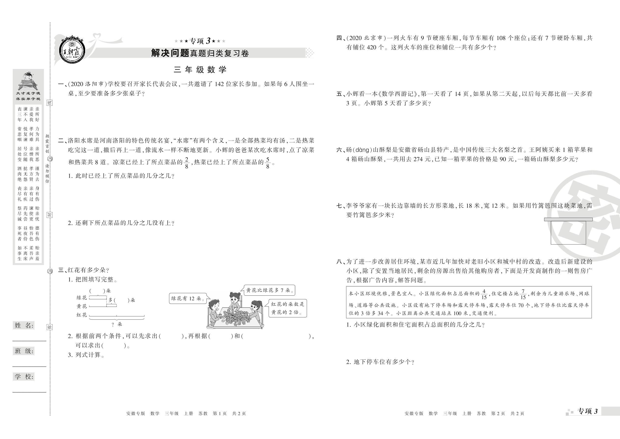 王朝霞期末专项卷——解决问题真题归类复习、新颖题速递:生活与数学三年级上册数学(苏教版)