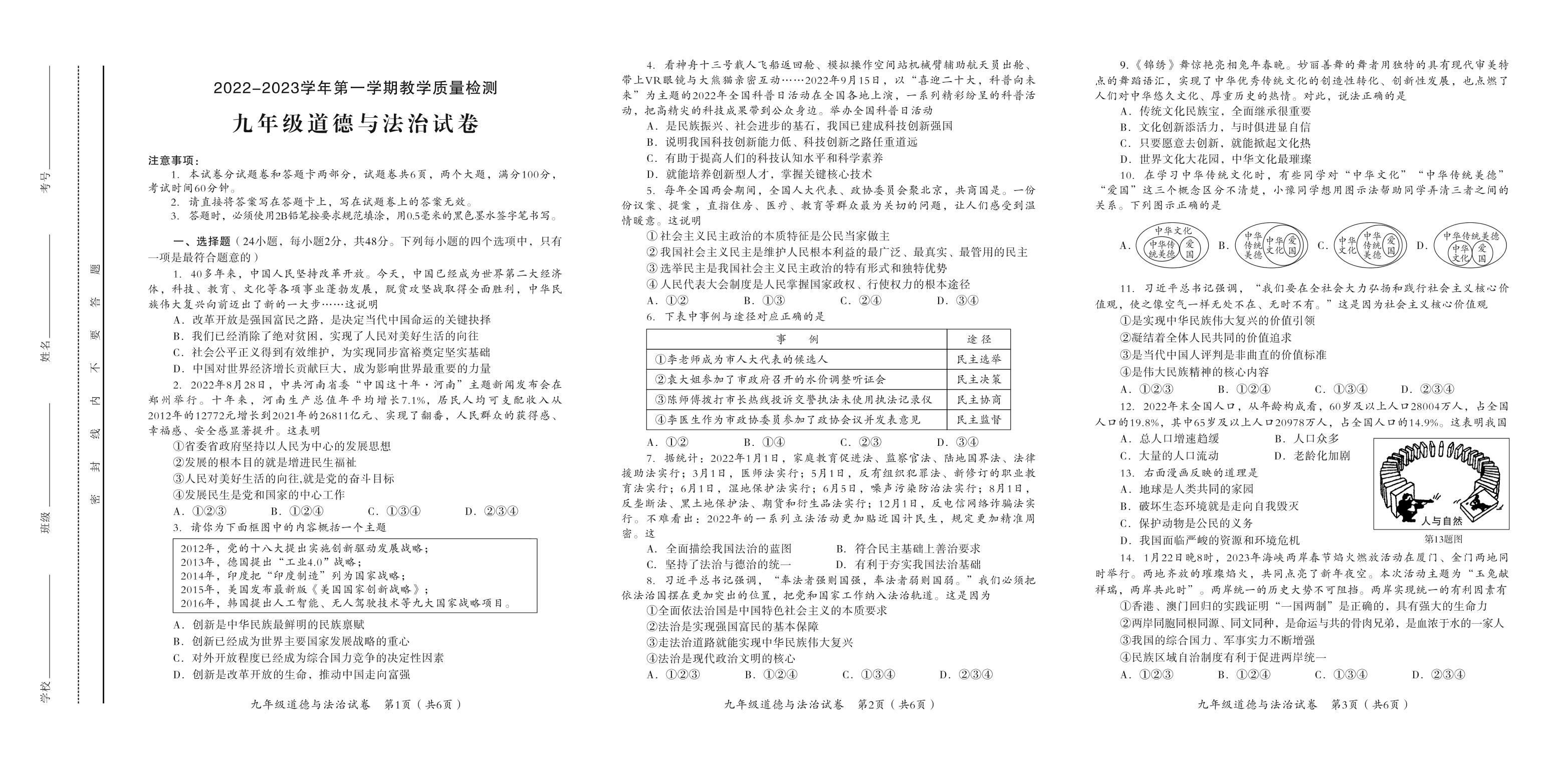 河南省安阳市殷都区2022-2023学年第一学期期末教学质量检测试卷九年级道德与法治(人教版)