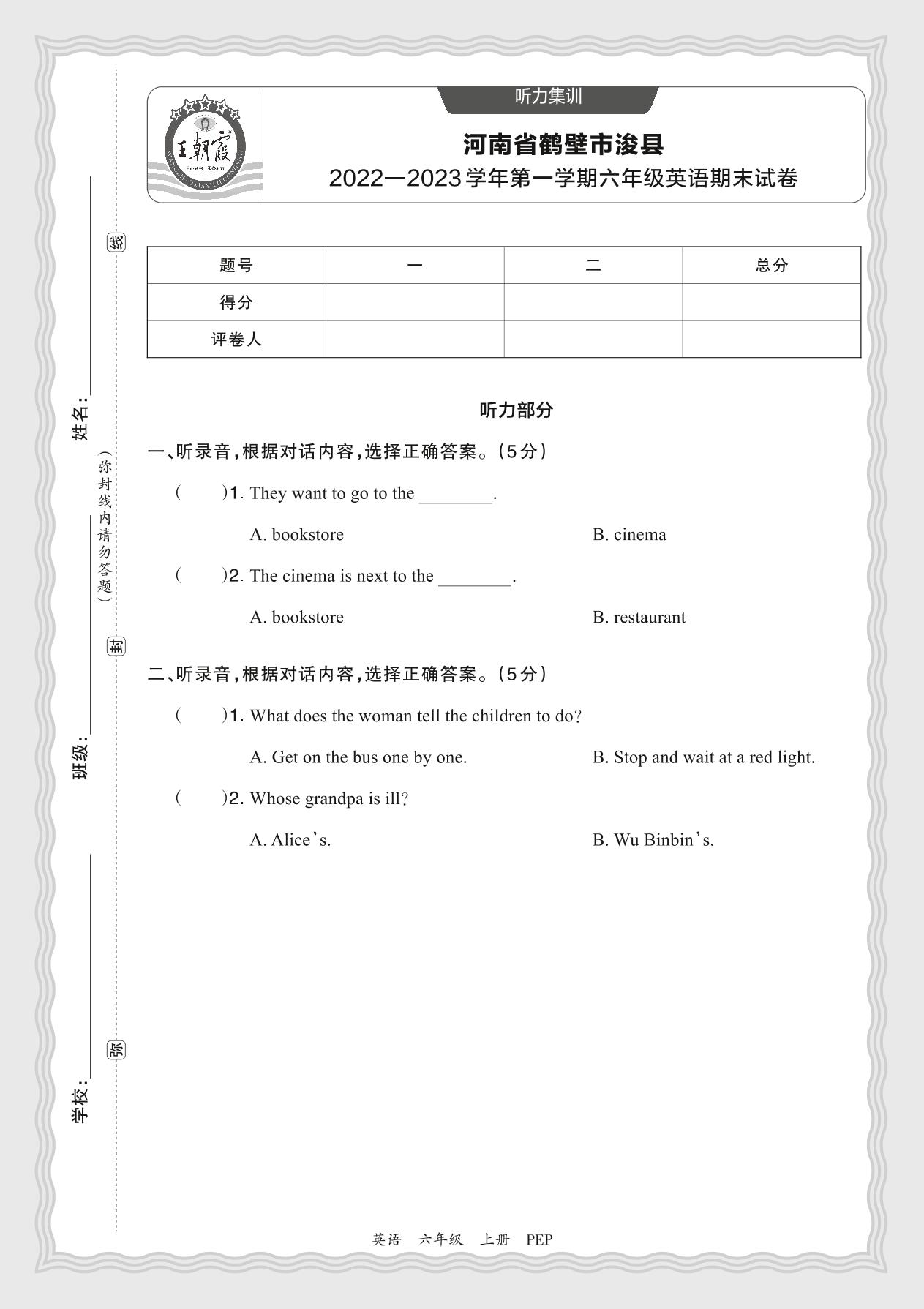 【听力集训】河南省鹤壁市浚县2022—2023学年第一学期六年级英语期末试卷(人教PEP版)