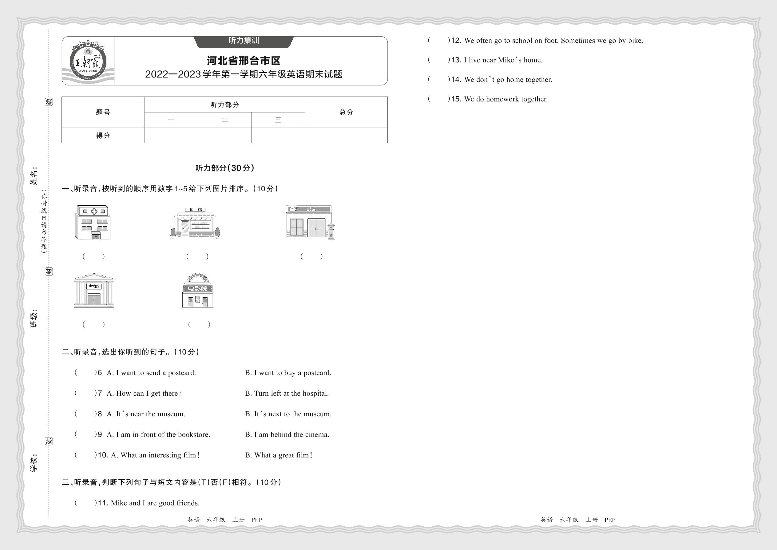 【听力集训】河北省邢台市区2022—2023学年第一学期六年级英语期末试题(人教PEP版)