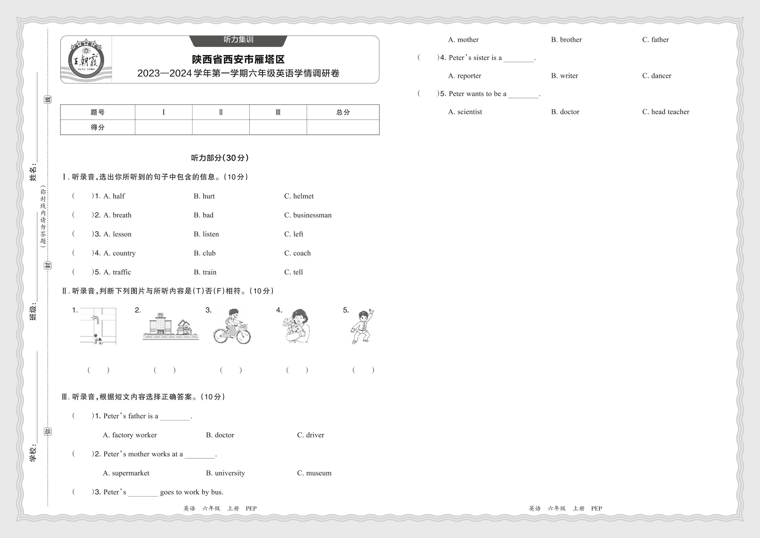 【听力集训】陕西省西安市雁塔区2023—2024学年第一学期六年级英语学情调研卷(人教PEP版)