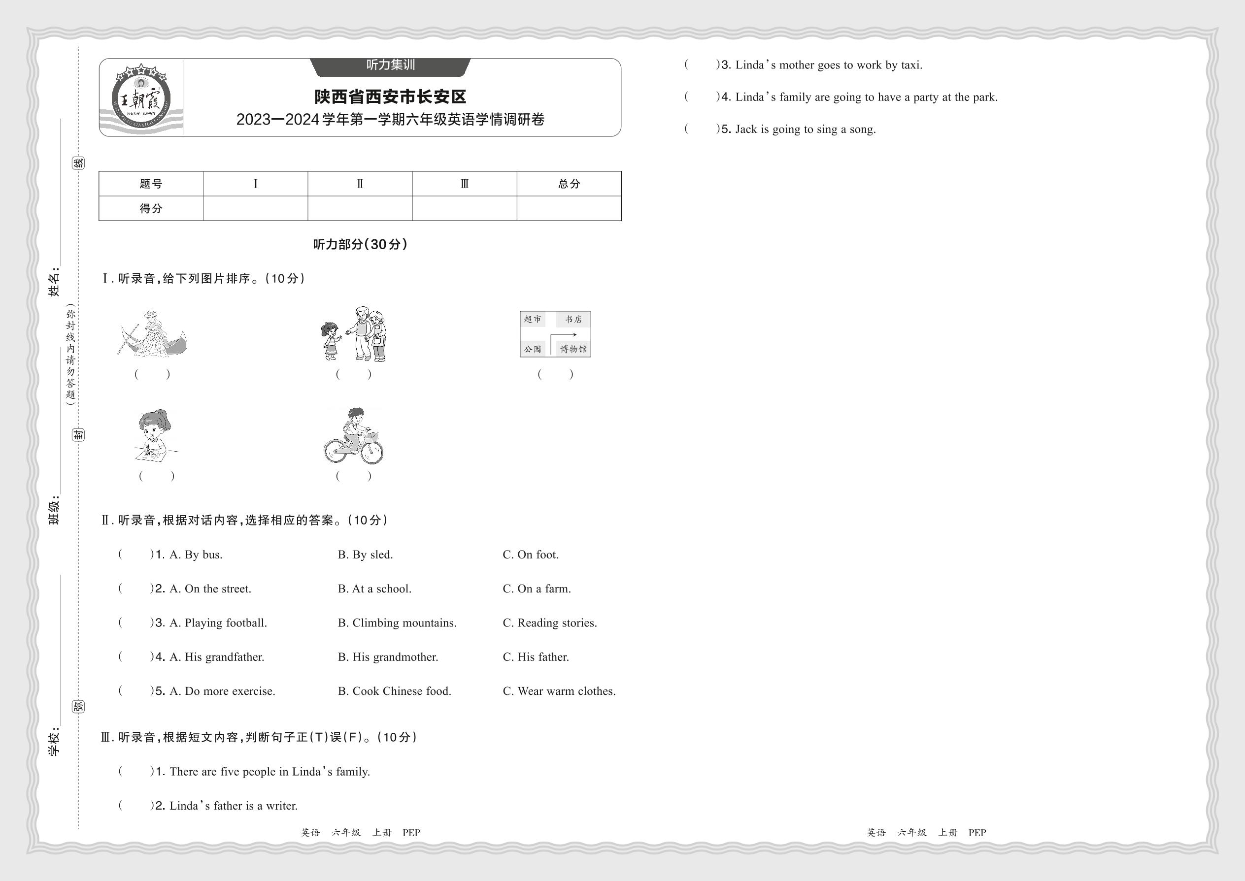 【听力集训】陕西省西安市长安区2023—2024学年第一学期六年级英语学情调研卷(人教PEP版)