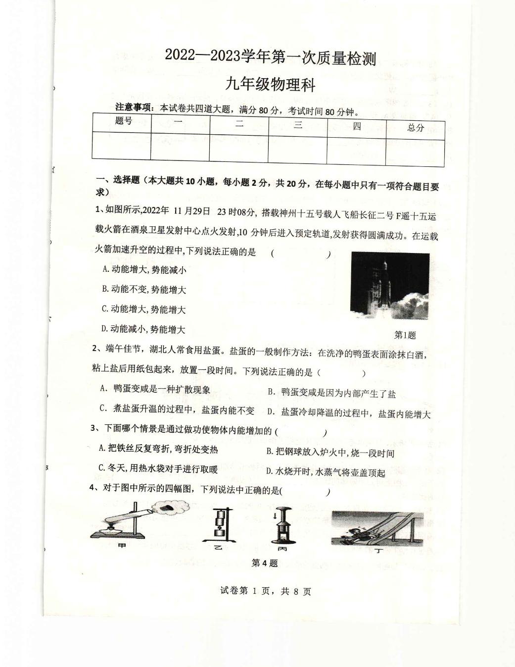 九年级物理北师版上册期末卷