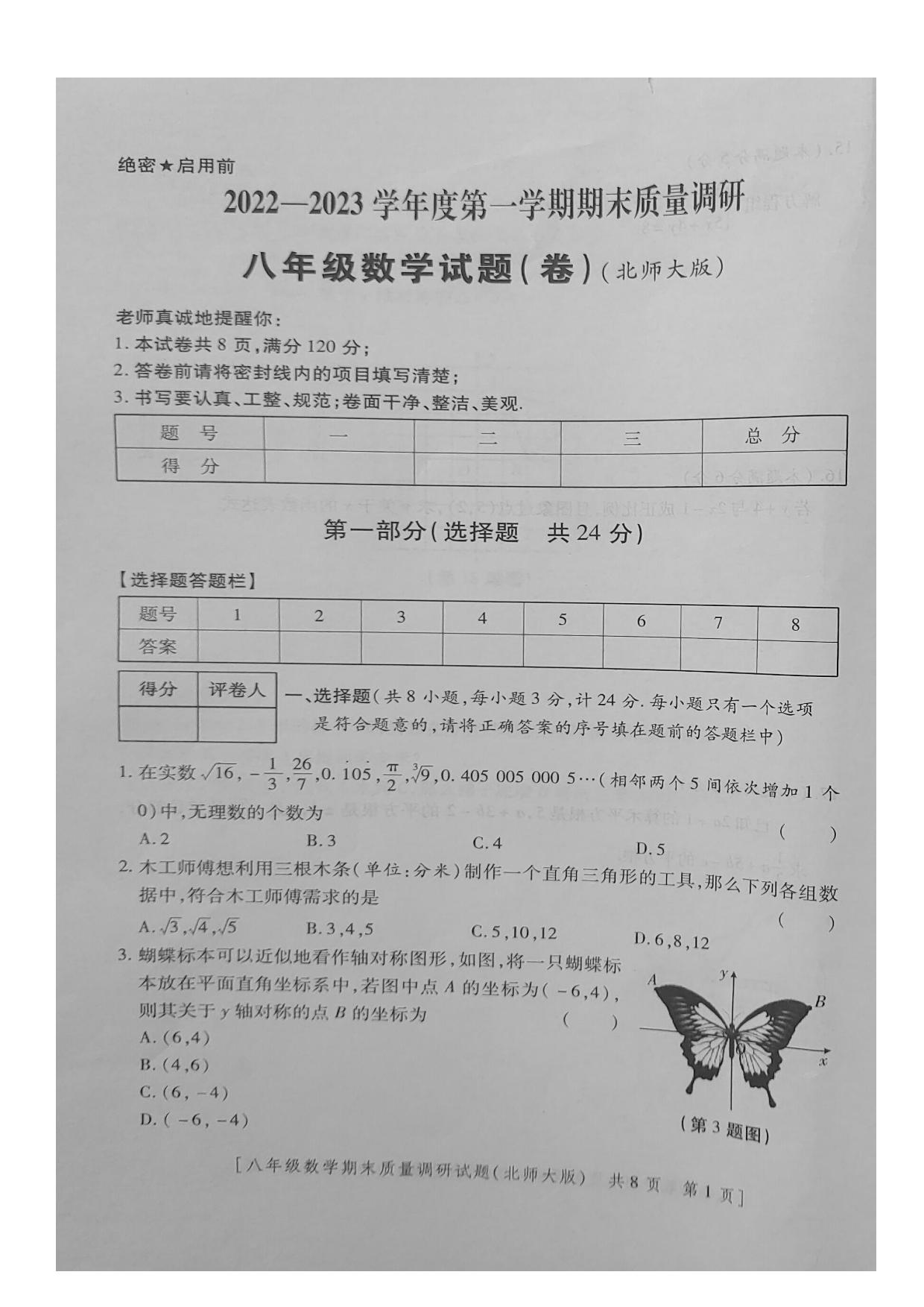 八年级数学北师版上册期末卷