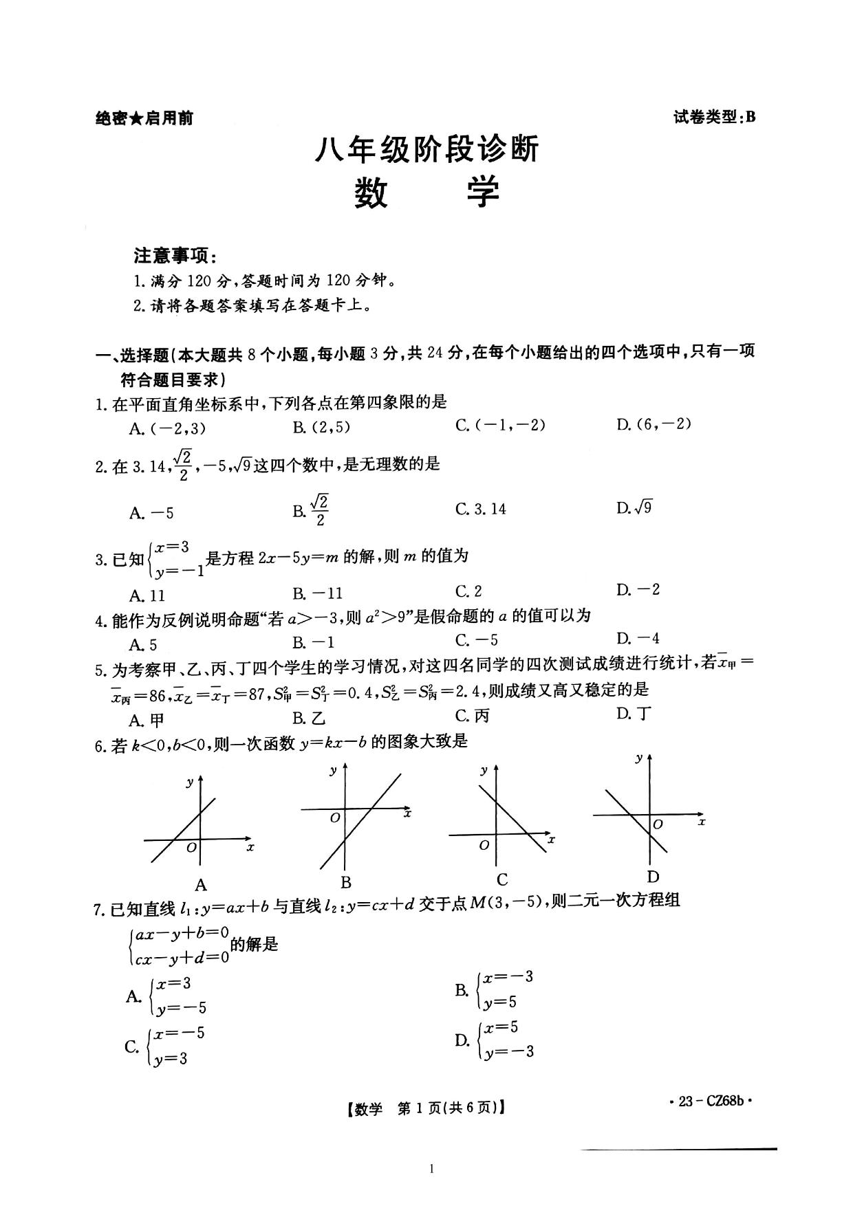 陕西省西安市莲湖区2022—2023学年度第一学期期末统考试题八年级数学(北师版)