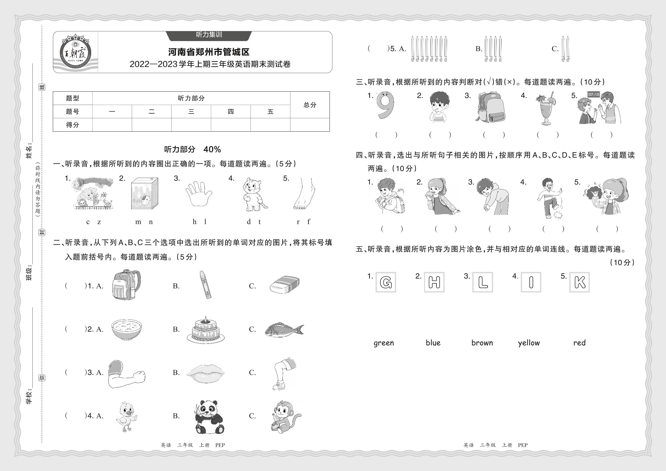 【听力集训】河南省郑州市管城区2022—2023学年上期三年级英语期末测试卷(人教PEP版)