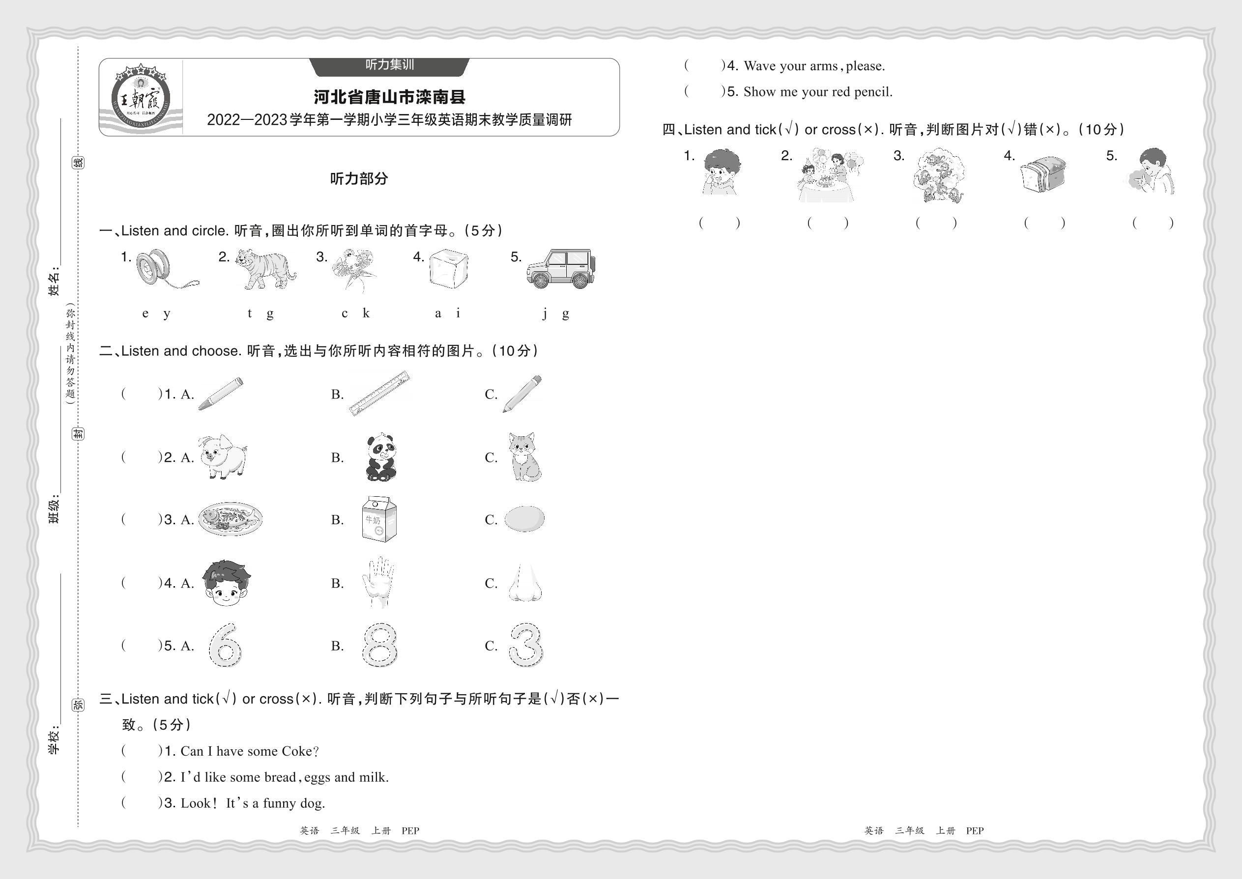 【听力集训】河北省唐山市滦南县2022—2023学年第一学期小学三年级英语期末教学质量调研(人教PEP版)