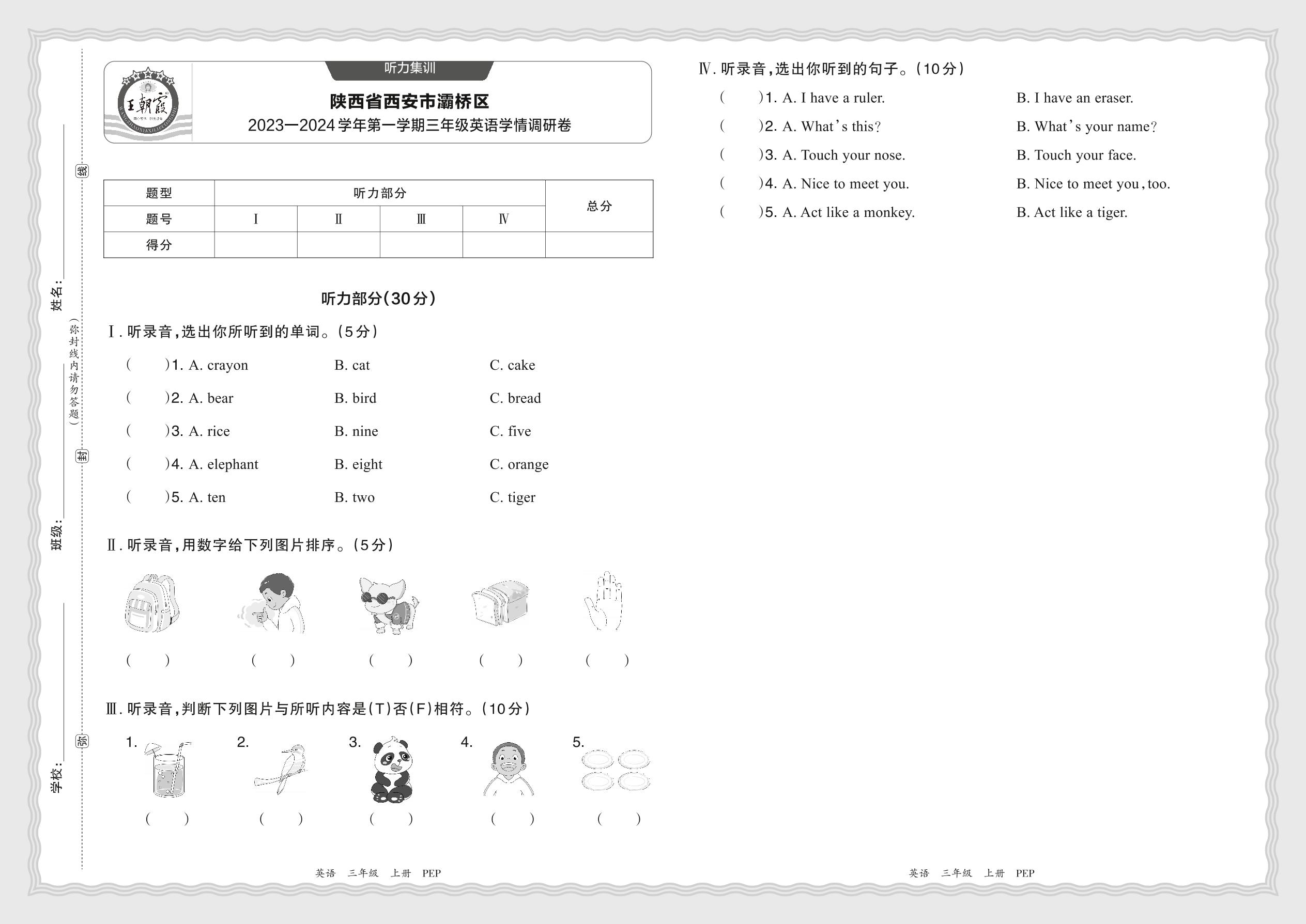 【听力集训】陕西省西安市灞桥区2023—2024学年第一学期三年级英语学情调研卷(人教PEP版)