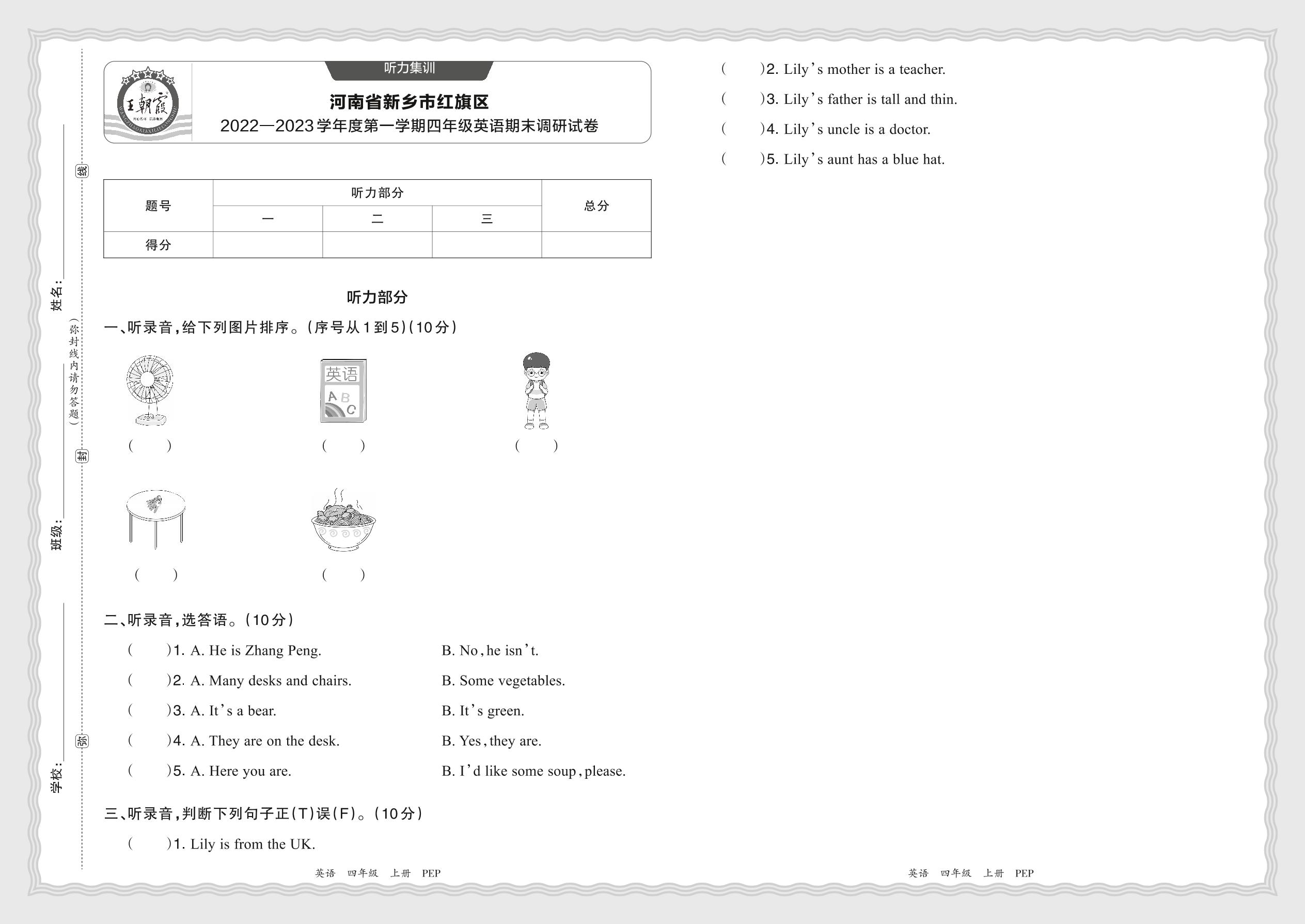 【听力集训】河南省新乡市红旗区2022—2023学年第一学期四年级英语期末调研 (人教PEP版)