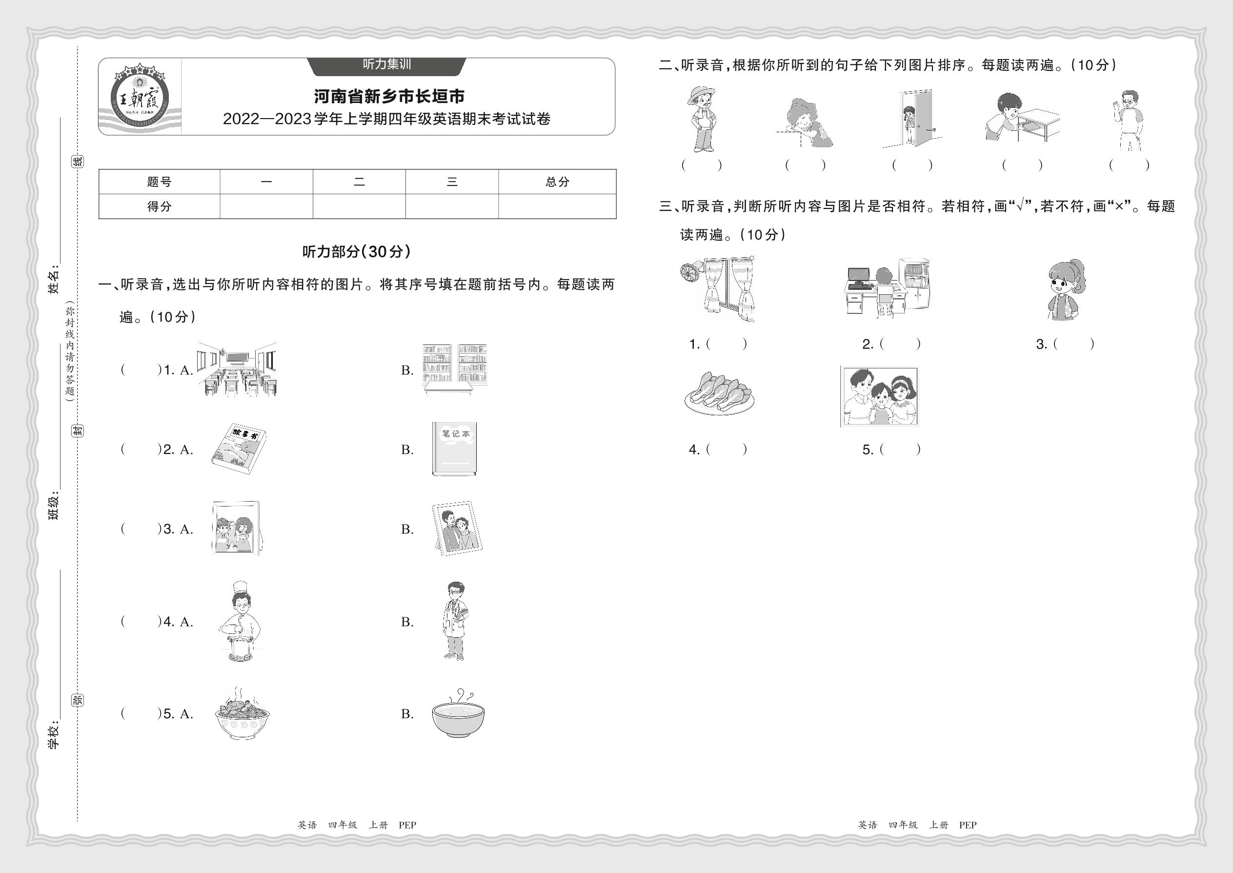 【听力集训】河南省新乡市长垣市2022—2023学年上学期四年级英语期末考试试卷(人教PEP版)