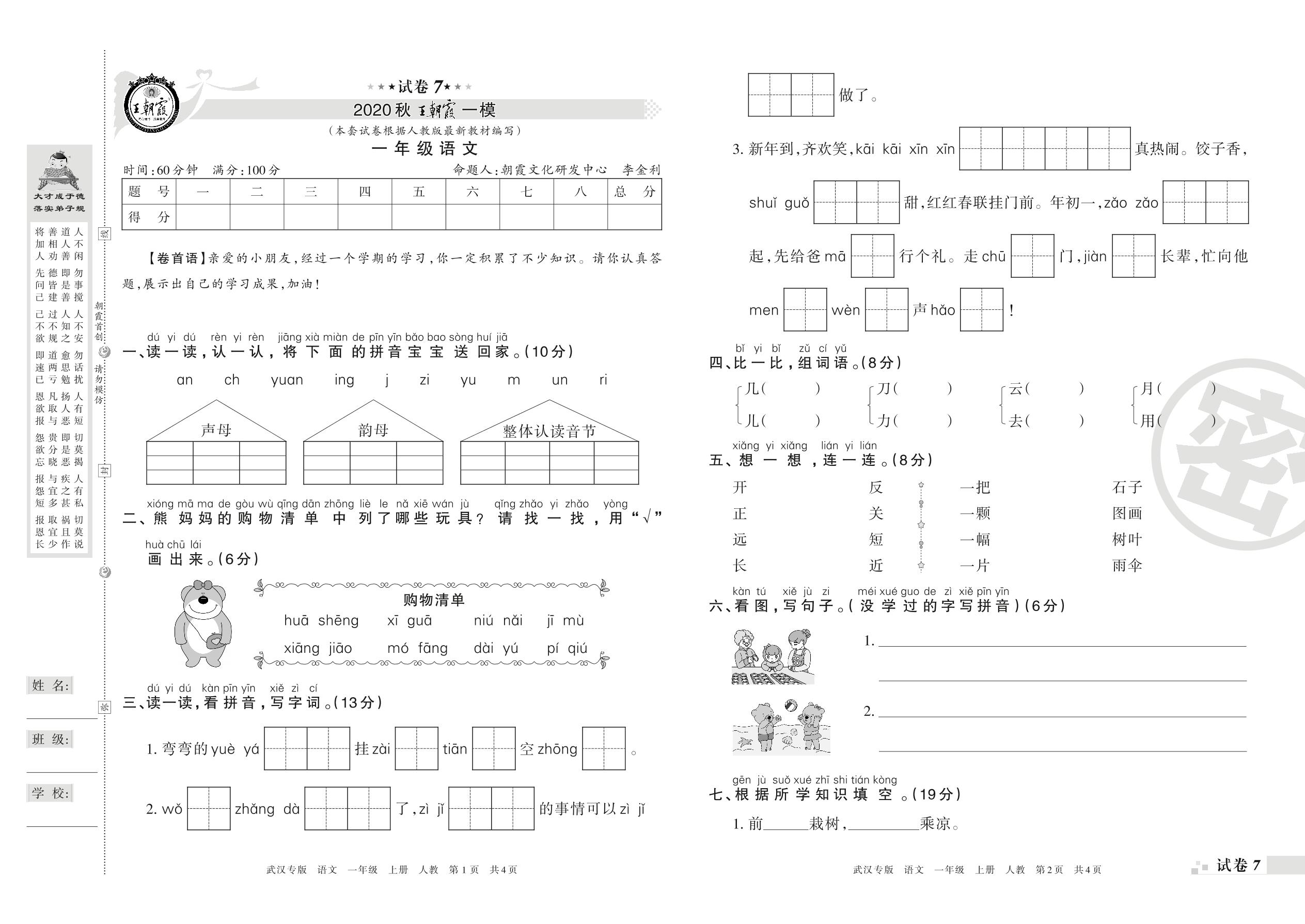 王朝霞期末模拟卷一年级上册语文(人教版)_R210731173700【7】