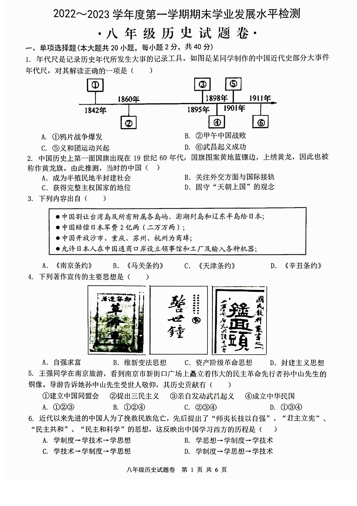 安徽省芜湖市无为市2022-2023学年度第一学期期末学业发展水平检测八年级历史(人教版)
