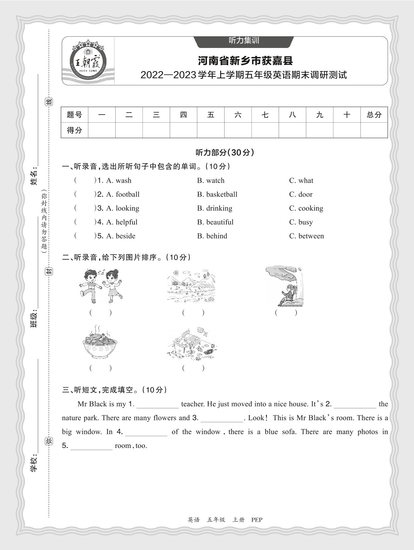 【听力集训】河南省新乡市获嘉县2022—2023学年上学期五年级英语期末调研测试(人教PEP版)