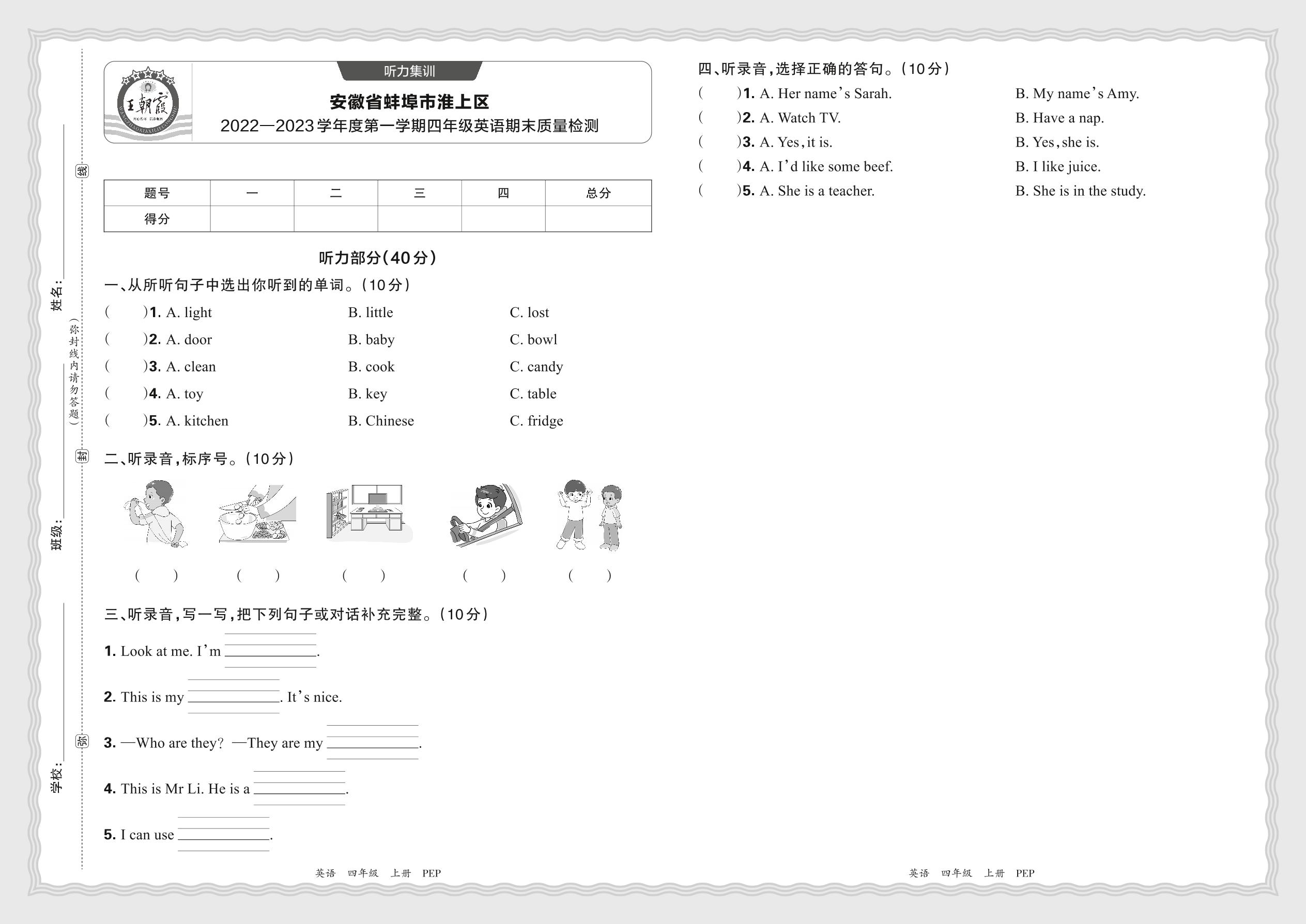 【听力集训】安徽省蚌埠市淮上区2022—2023学年度第一学期四年级英语期末教学质量检测(人教PEP版)