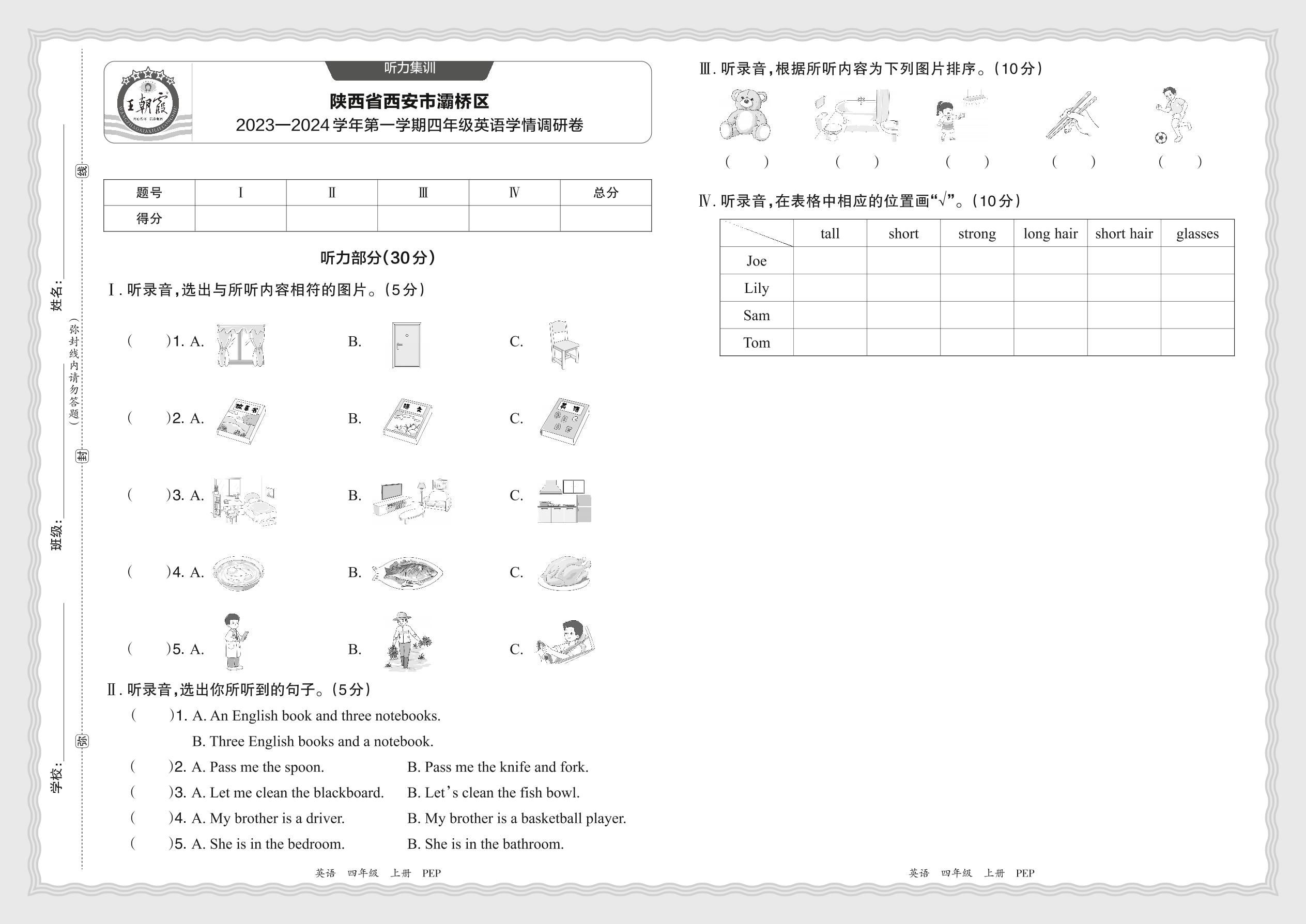 【听力集训】陕西省西安市灞桥区2023—2024学年第一学期四年级英语学情调研卷(人教PEP版)