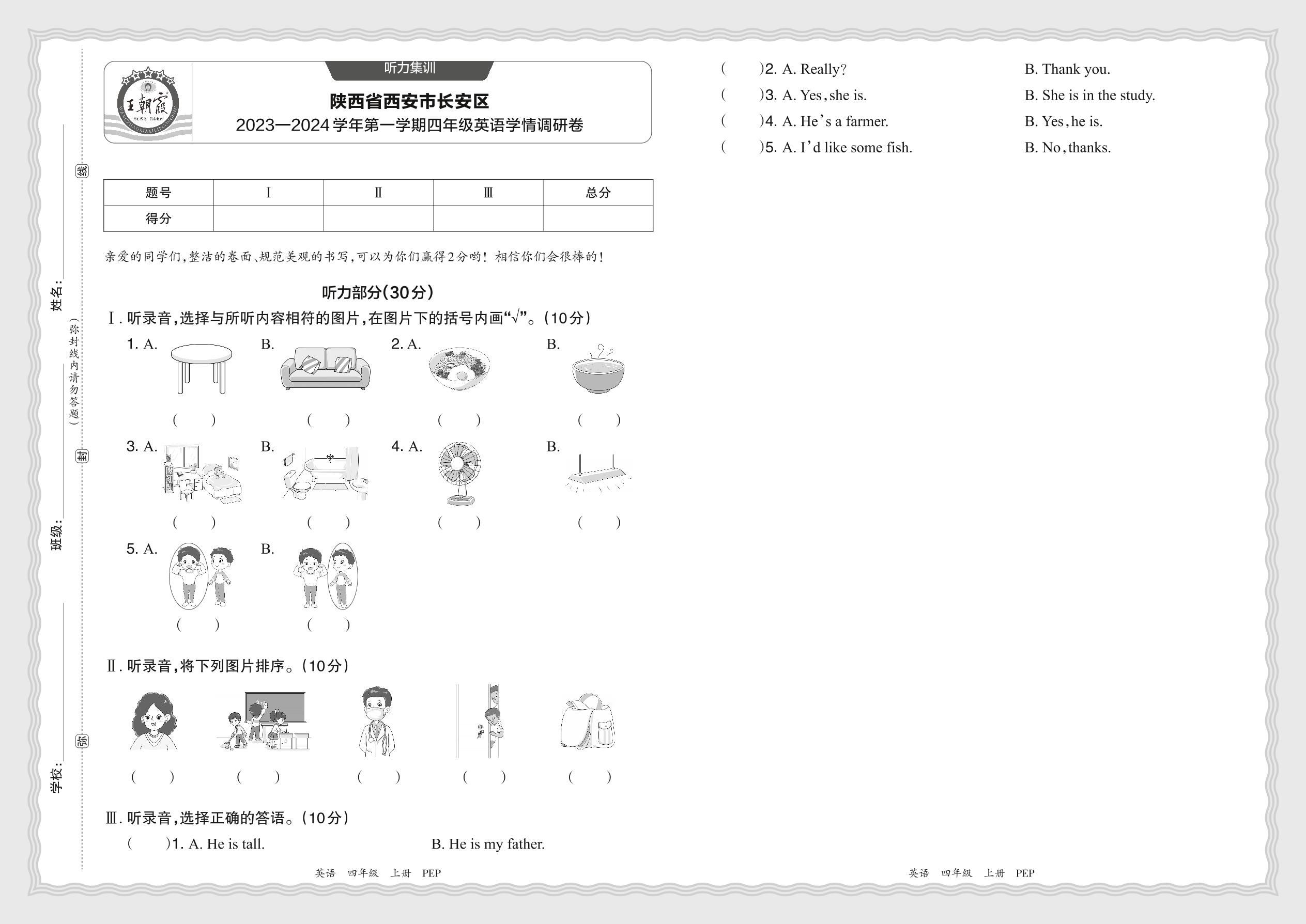 【听力集训】陕西省西安市长安区2023—2024学年第一学期四年级英语学情调研卷(人教PEP版)