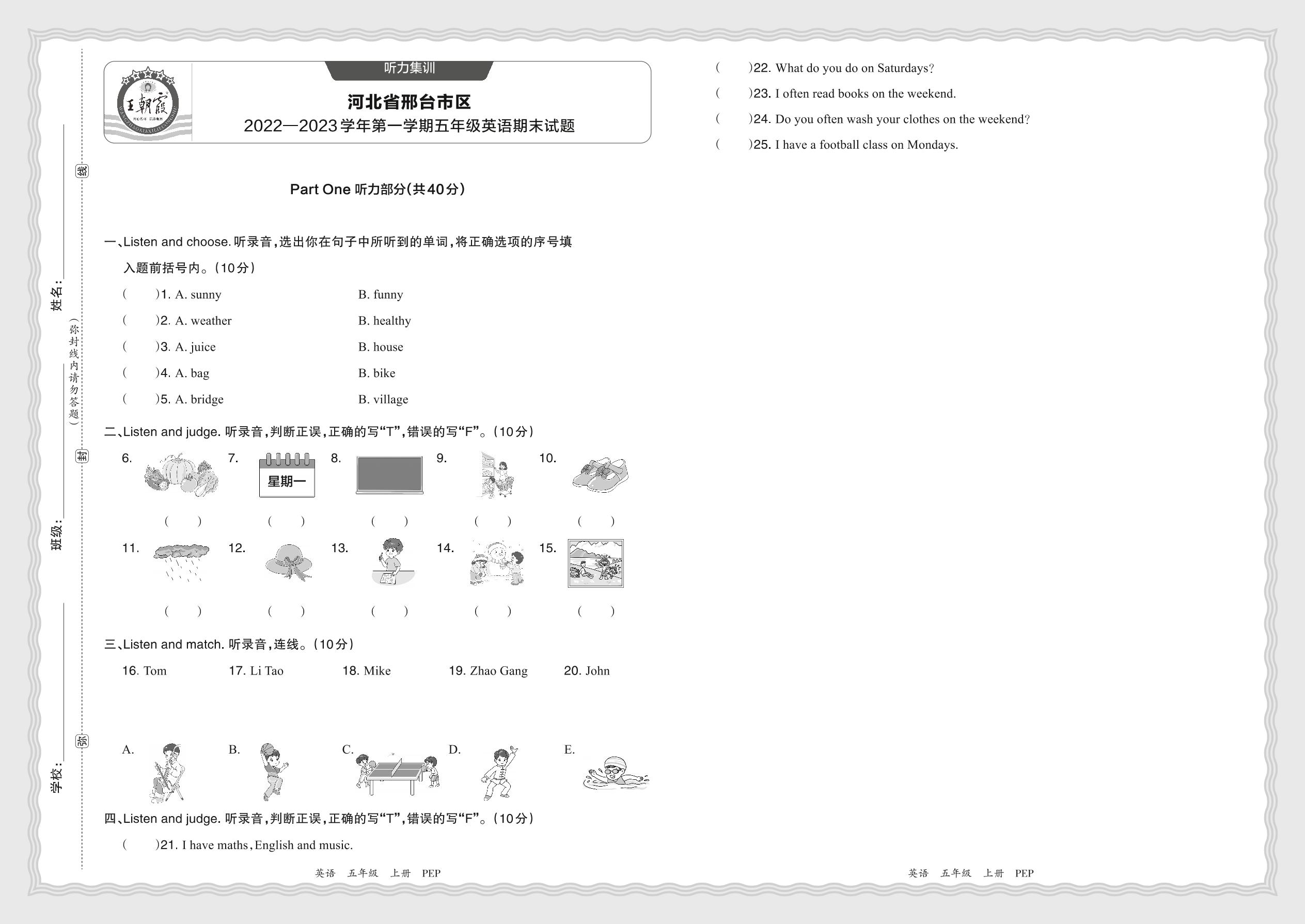 【听力集训】河北省邢台市区2022—2023学年第一学期五年级英语期末试题(人教PEP版)