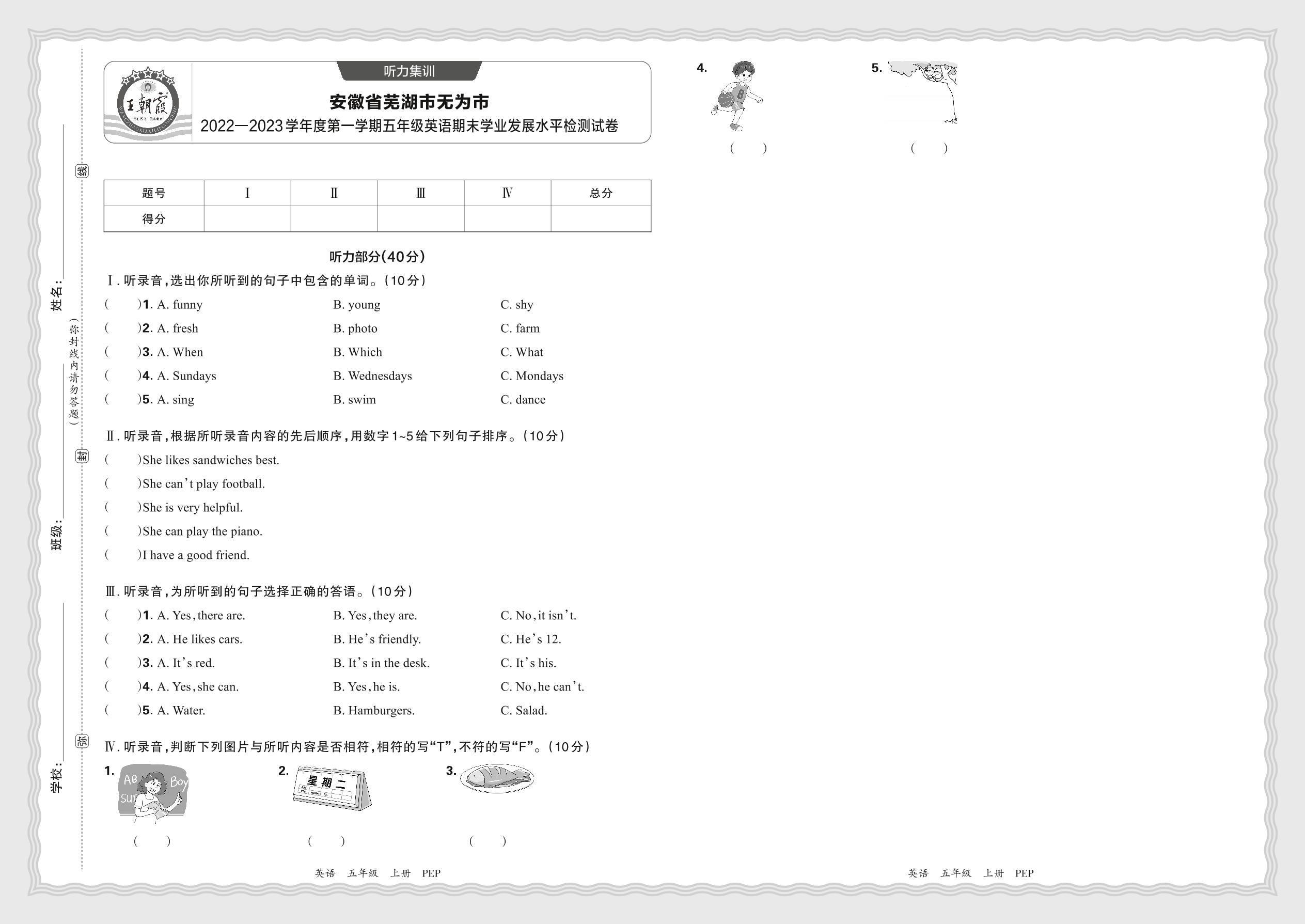 【听力集训】安徽省芜湖市无为市2022—2023学年度第一学期五年级英语期末学业发展水平检测试卷(人教PEP版)