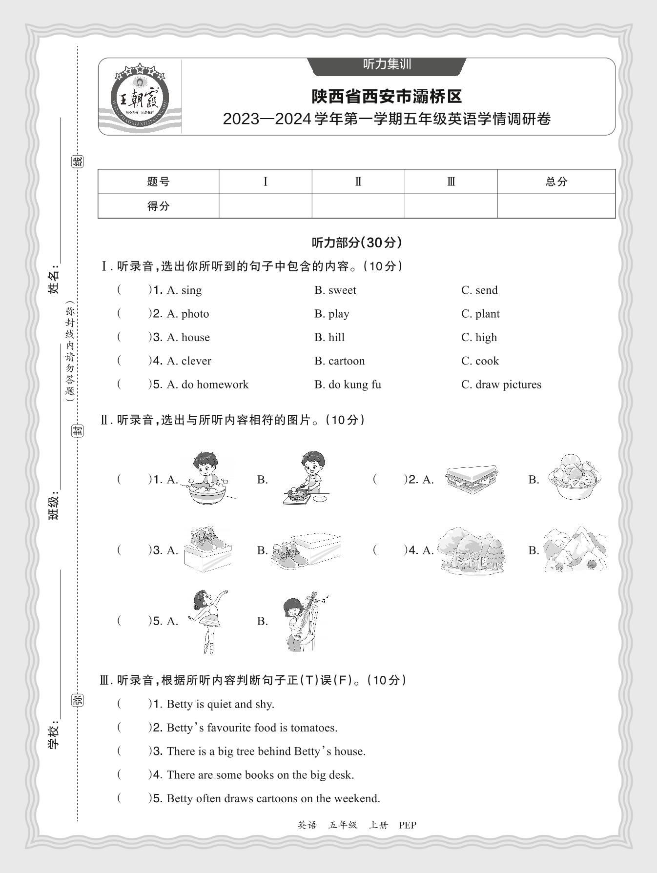 【听力集训】陕西省西安市灞桥区2023—2024学年第一学期五年级英语学情调研卷(人教PEP版)